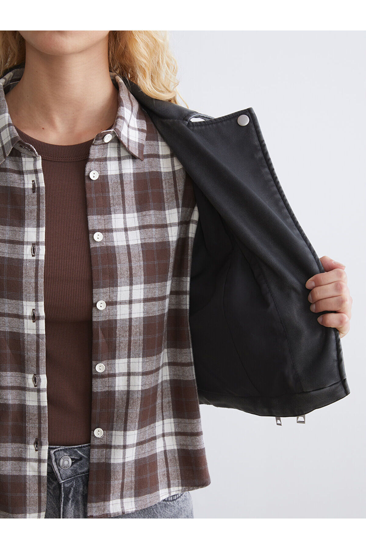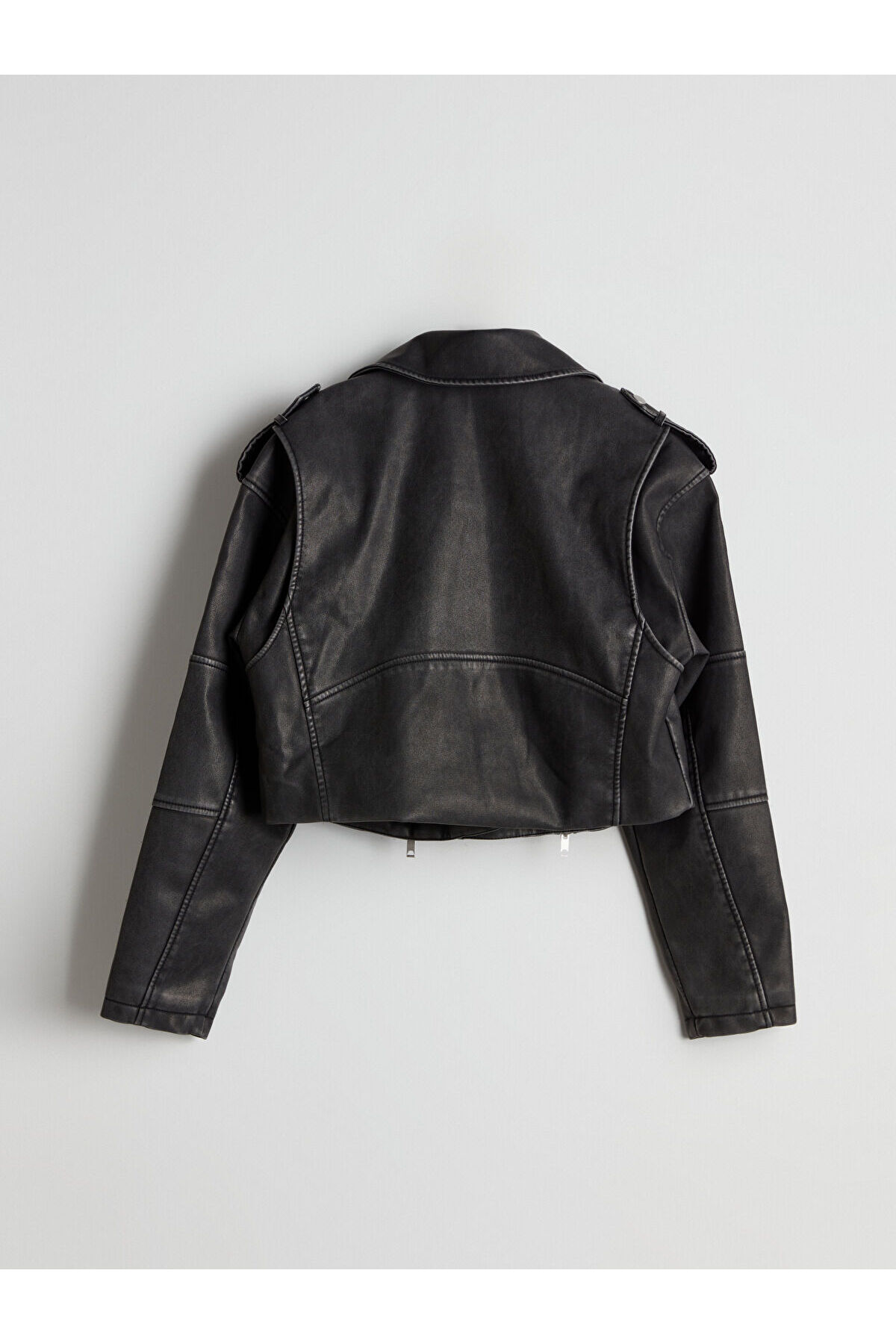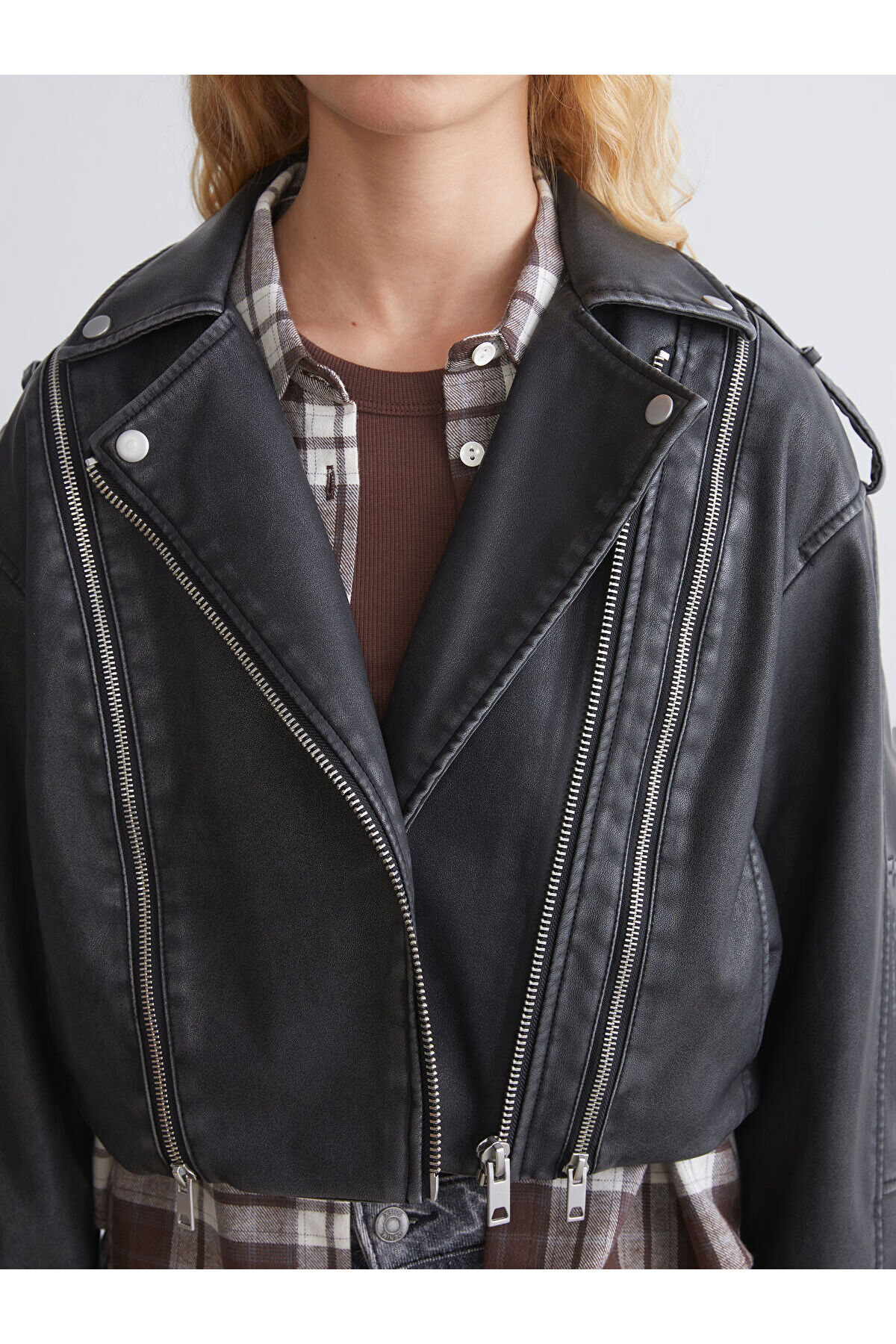 Biker Yaka Crop Kadın Deri Görünümlü Ceket Biker Yaka Crop Kadın Deri Görünümlü Ceket W56106Z8-CVL XL