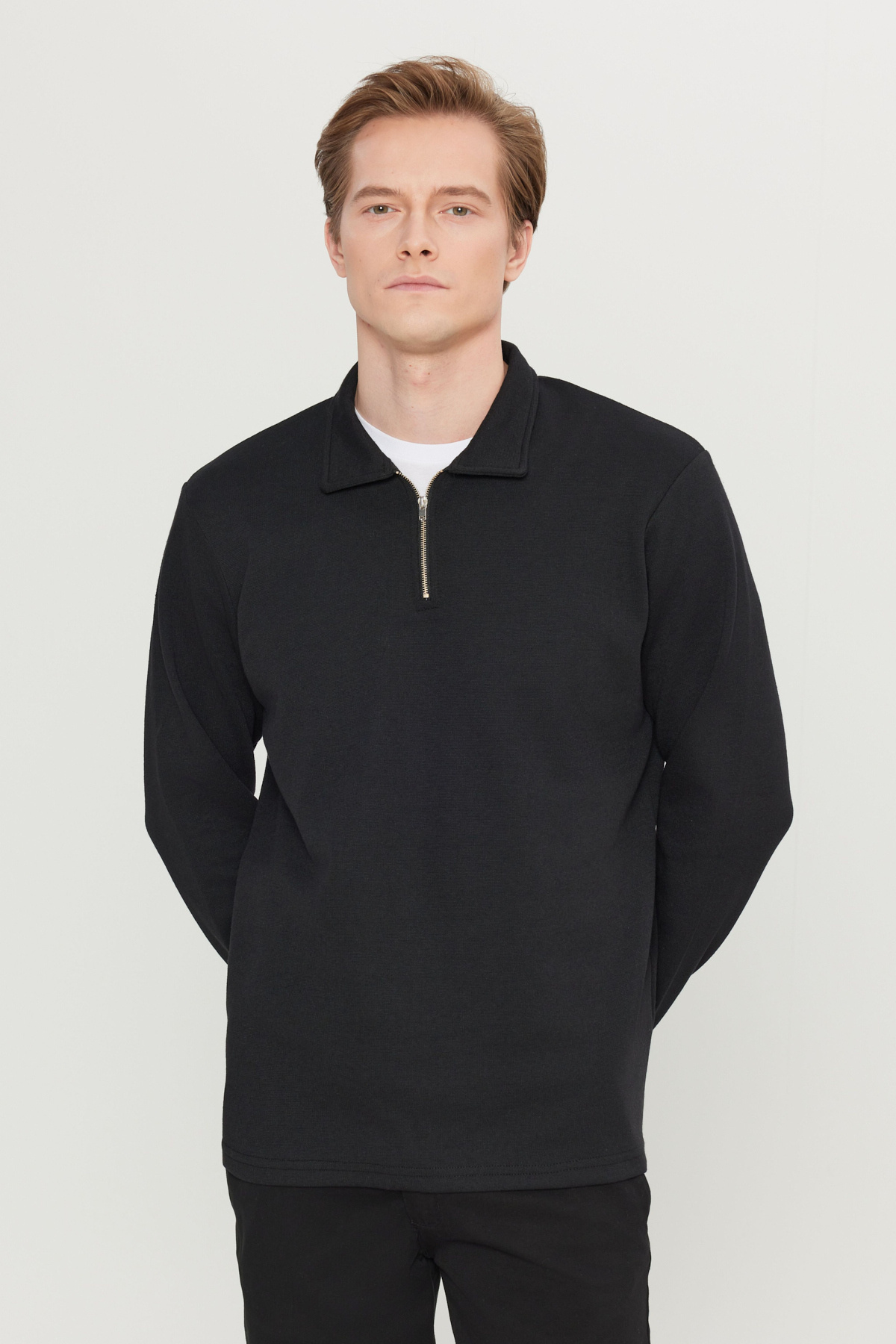 Erkek Siyah Pamuklu Standart Fit Normal Kesim Fermuarlı Polo Yaka Sweatshirt Erkek Siyah Pamuklu Standart Fit Normal Kesim Fermuarlı Polo Yaka Sweatshirt ETE052261076 2XL
