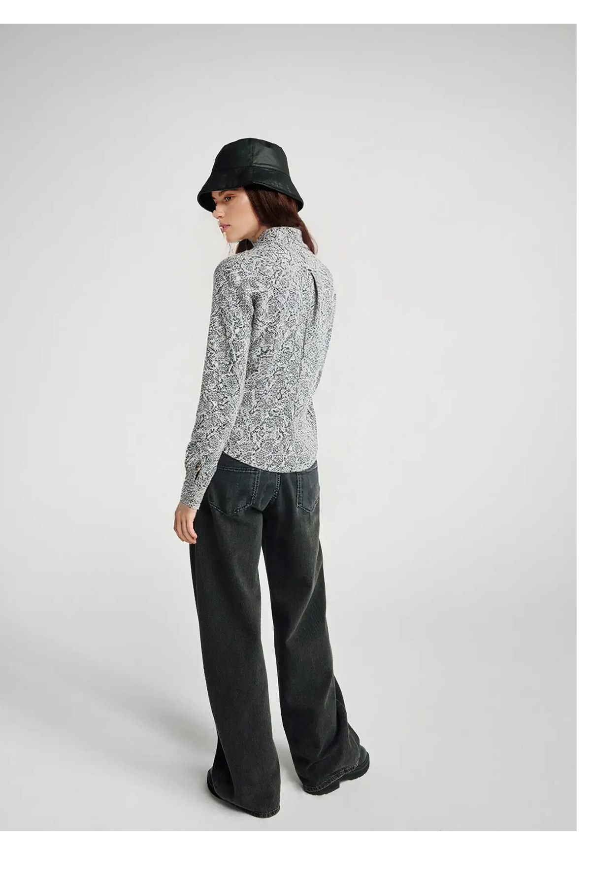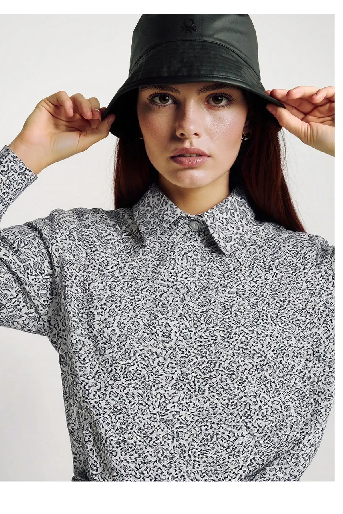 Kadın Gri Desenli %100 Pamuk Desenli Regular Fit Gömlek Kadın Gri Desenli %100 Pamuk Desenli Regular Fit Gömlek 125A5Q6SDQ0AY XL