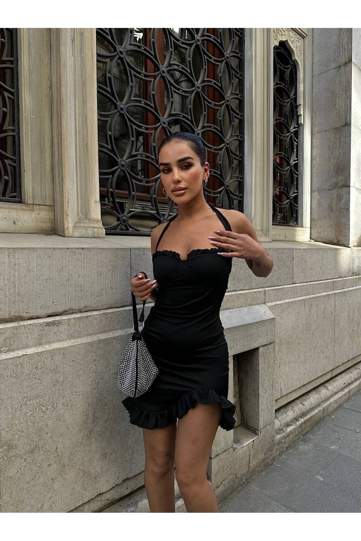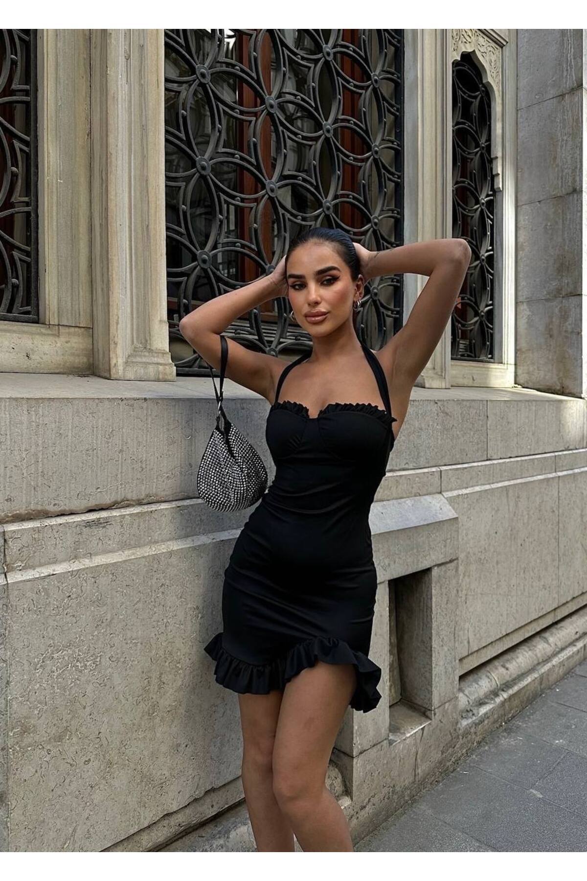 Italyan Fırfır Detaylı Mini Siyah Elbise Italyan Fırfır Detaylı Mini Siyah Elbise galloleo M