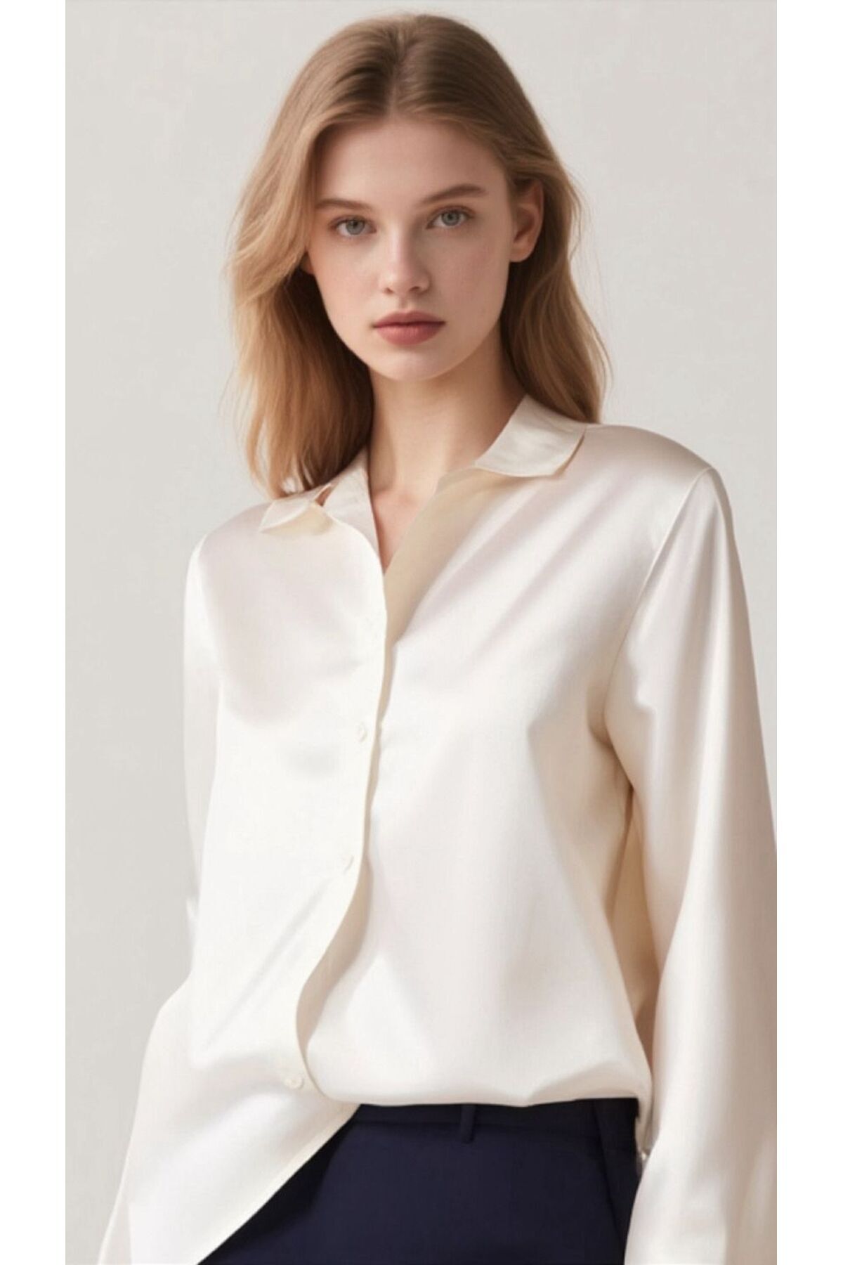Kadın Krem Hafif Dökümlü Saten Yüzeyli Gömlek HL23-YS25 Kadın Krem Hafif Dökümlü Saten Yüzeyli Gömlek HL23-YS25 50