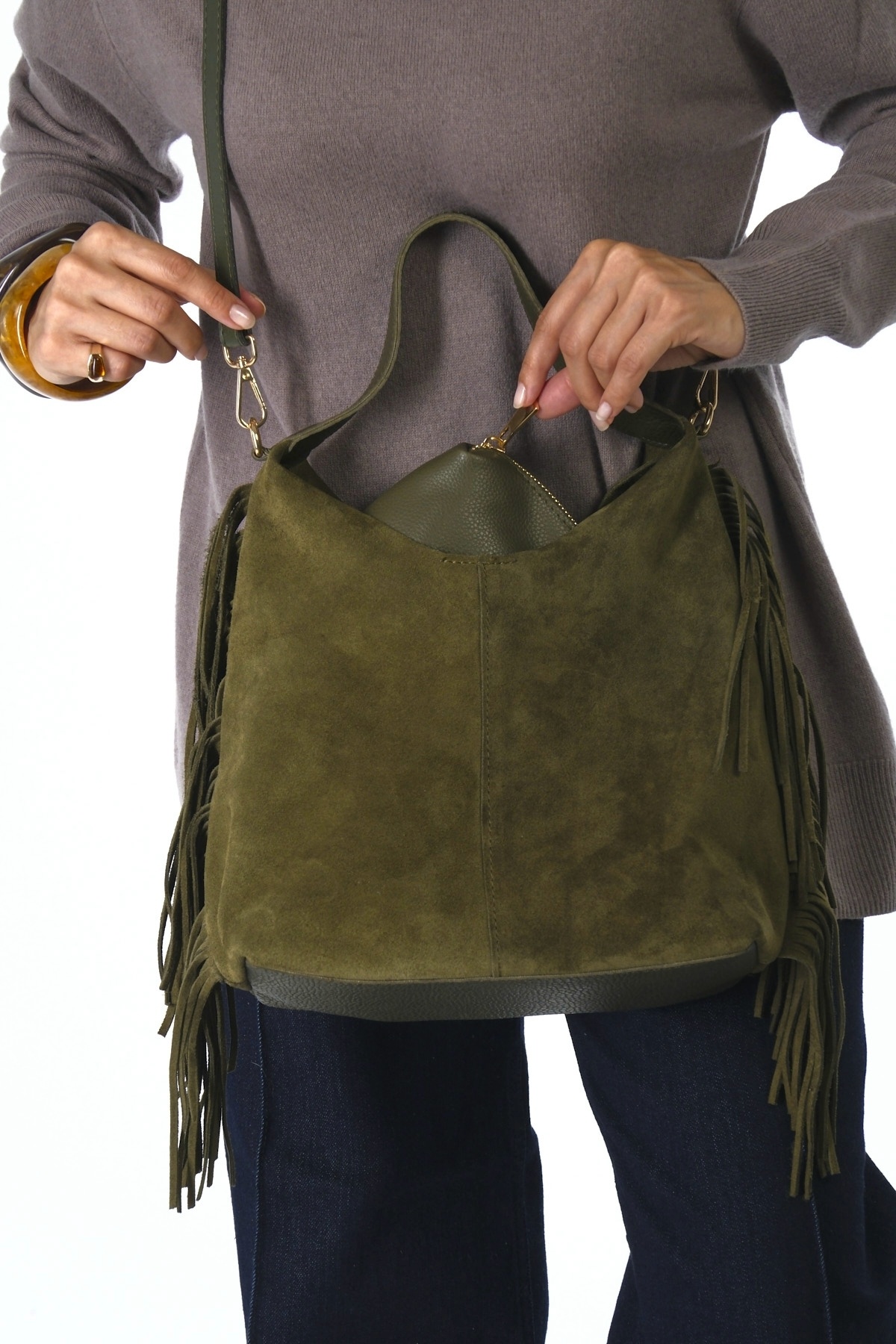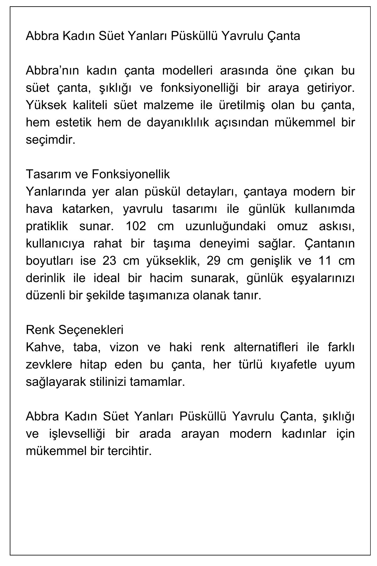 Kadın Süet Yanları Püsküllü Yavrulu Çanta Kadın Süet Yanları Püsküllü Yavrulu Çanta ABR-6119 Standart