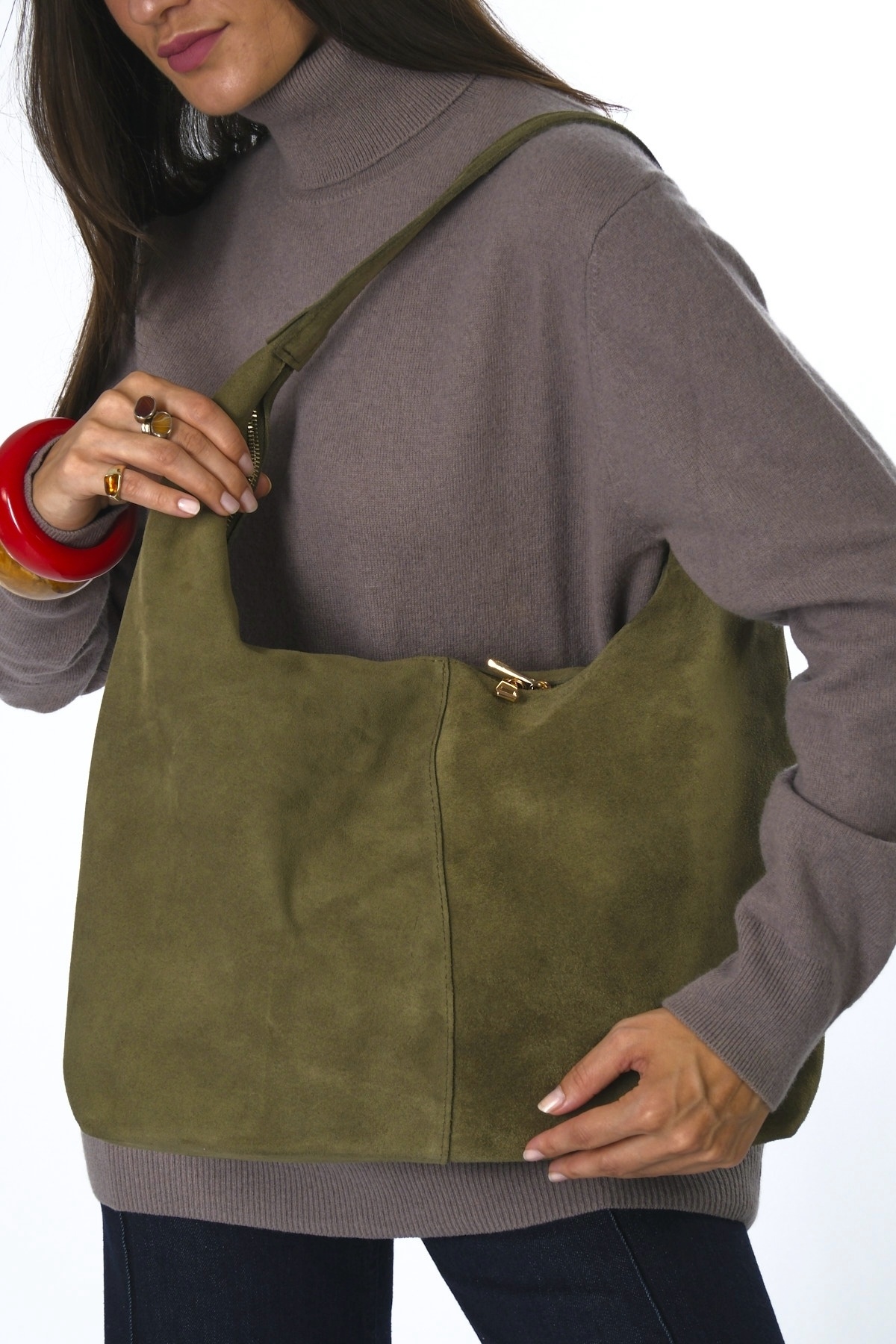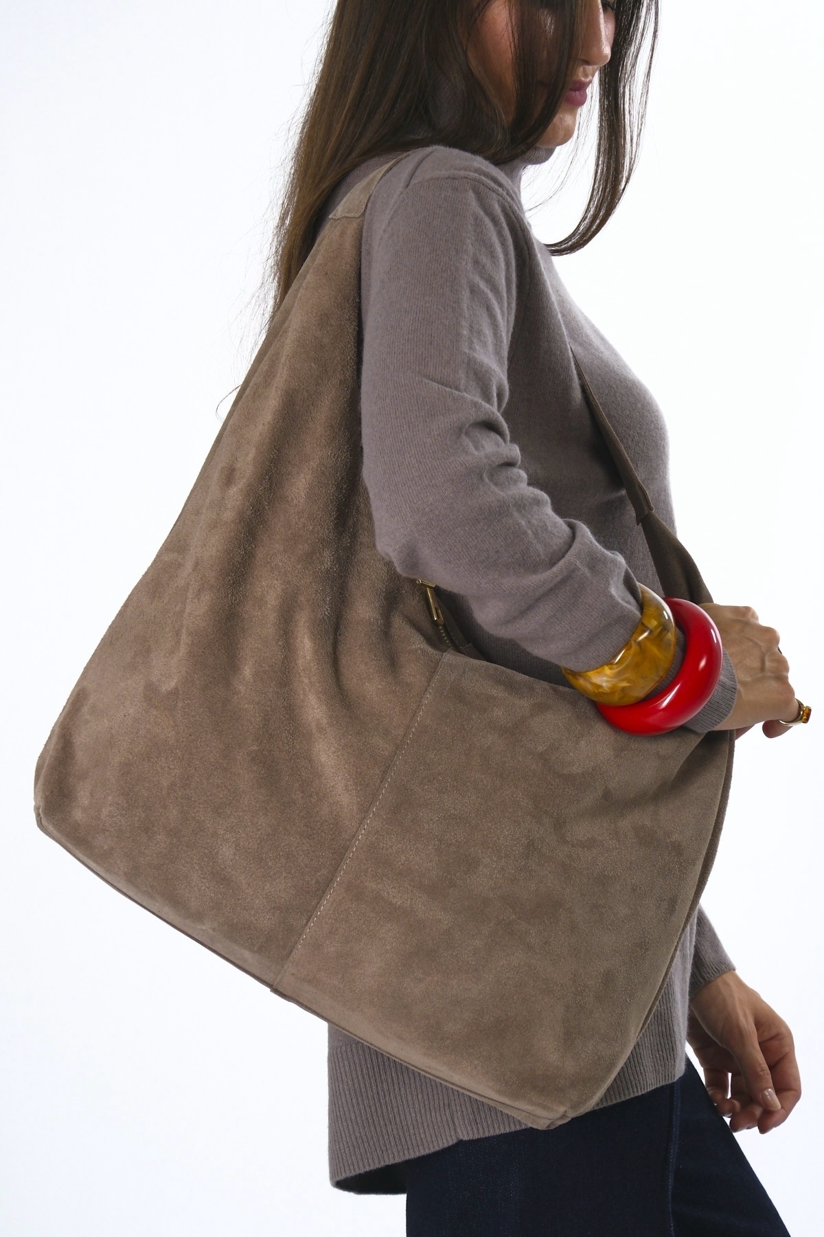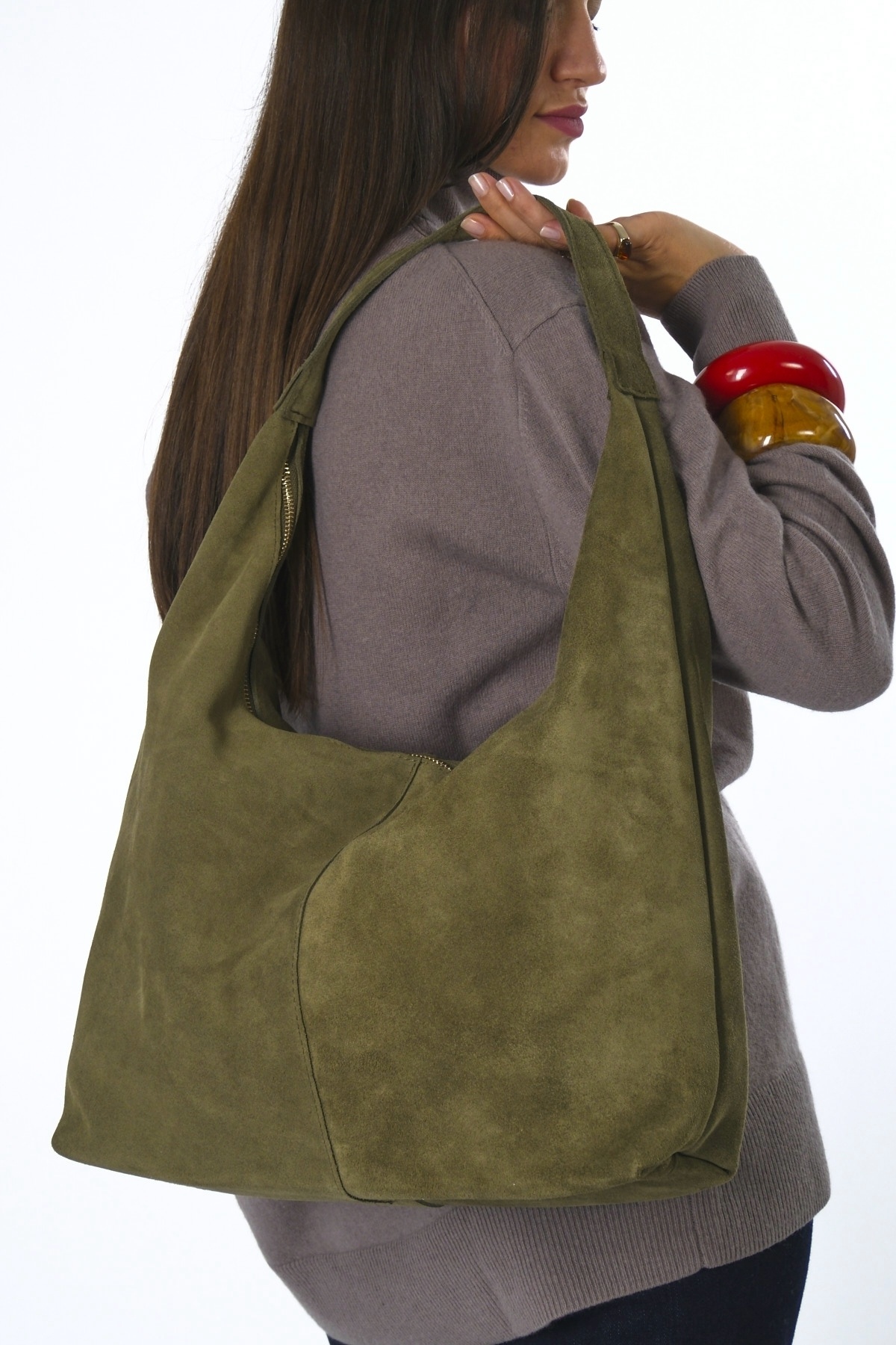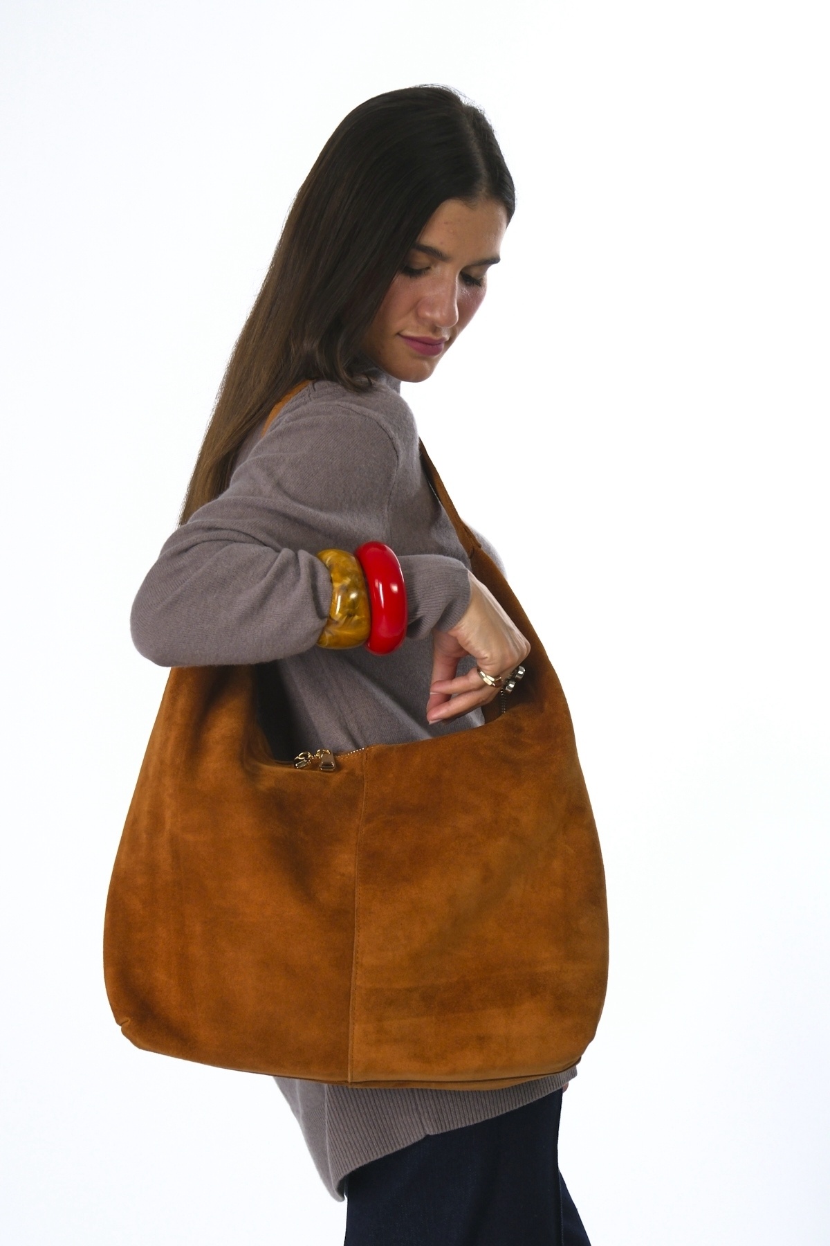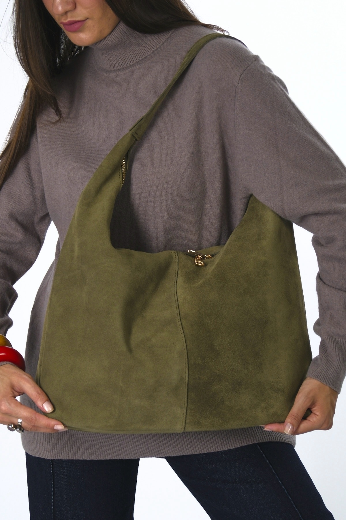 Kadın Süet Çift Fermuarlı Astarlı Torba Çanta Kadın Süet Çift Fermuarlı Astarlı Torba Çanta ABR-6123 Standart