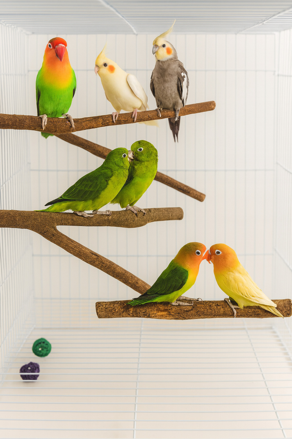 Doğal Ahşap Kuş Tüneği Seti – 5 Adet, 20 cm, Papağan ve Küçük Kuşlar için Güvenli