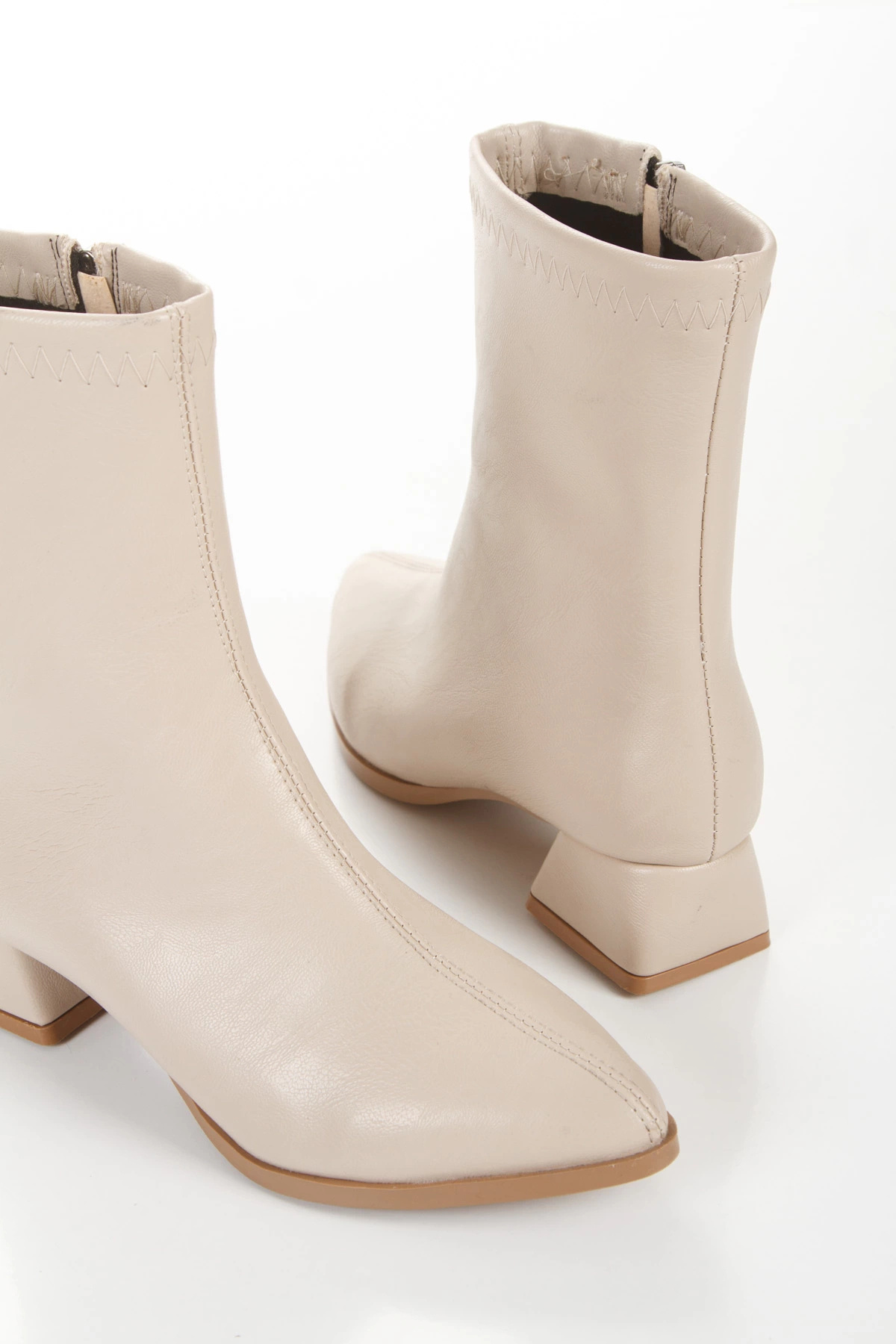 Bej Kısa Kalın Topuklu Sivri Burunlu Günlük Bot Bej Kısa Kalın Topuklu Sivri Burunlu Günlük Bot hsynstr10 40