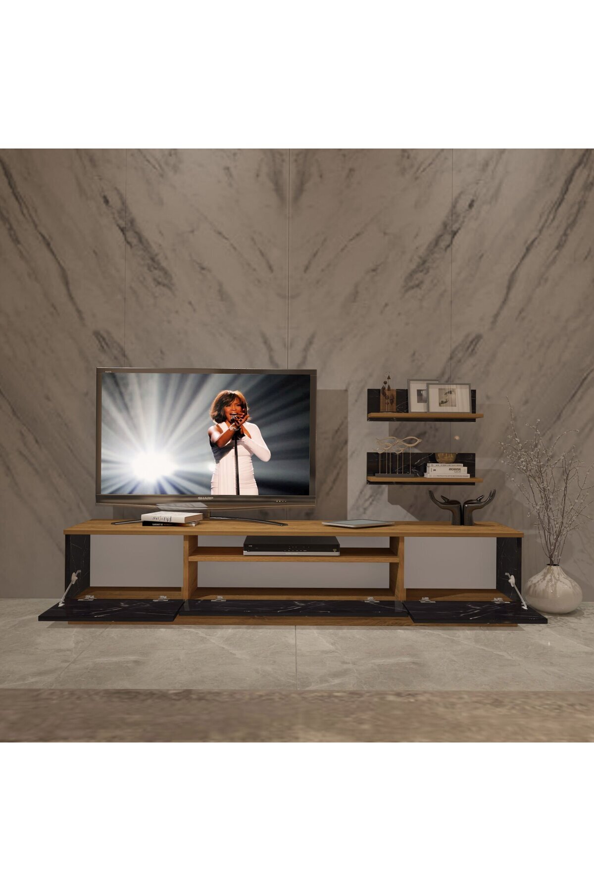 Trio 4s Mdf Tv Ünitesi Tv Sehpası - Pera - Siyah Mermer Trio 4s Mdf Tv Ünitesi Tv Sehpası - Pera - Siyah Mermer TRIO-4S-MDF تک سایز