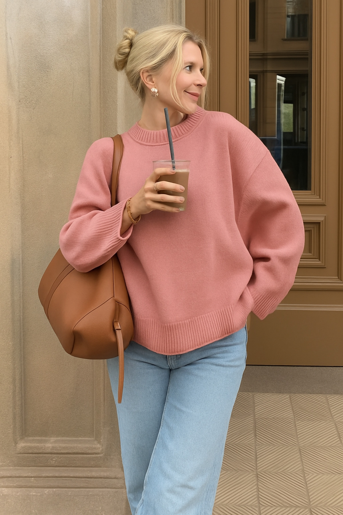 Pembe Oversize Kalıp Örgü Triko Kazak Pembe Oversize Kalıp Örgü Triko Kazak salastrikokazak L