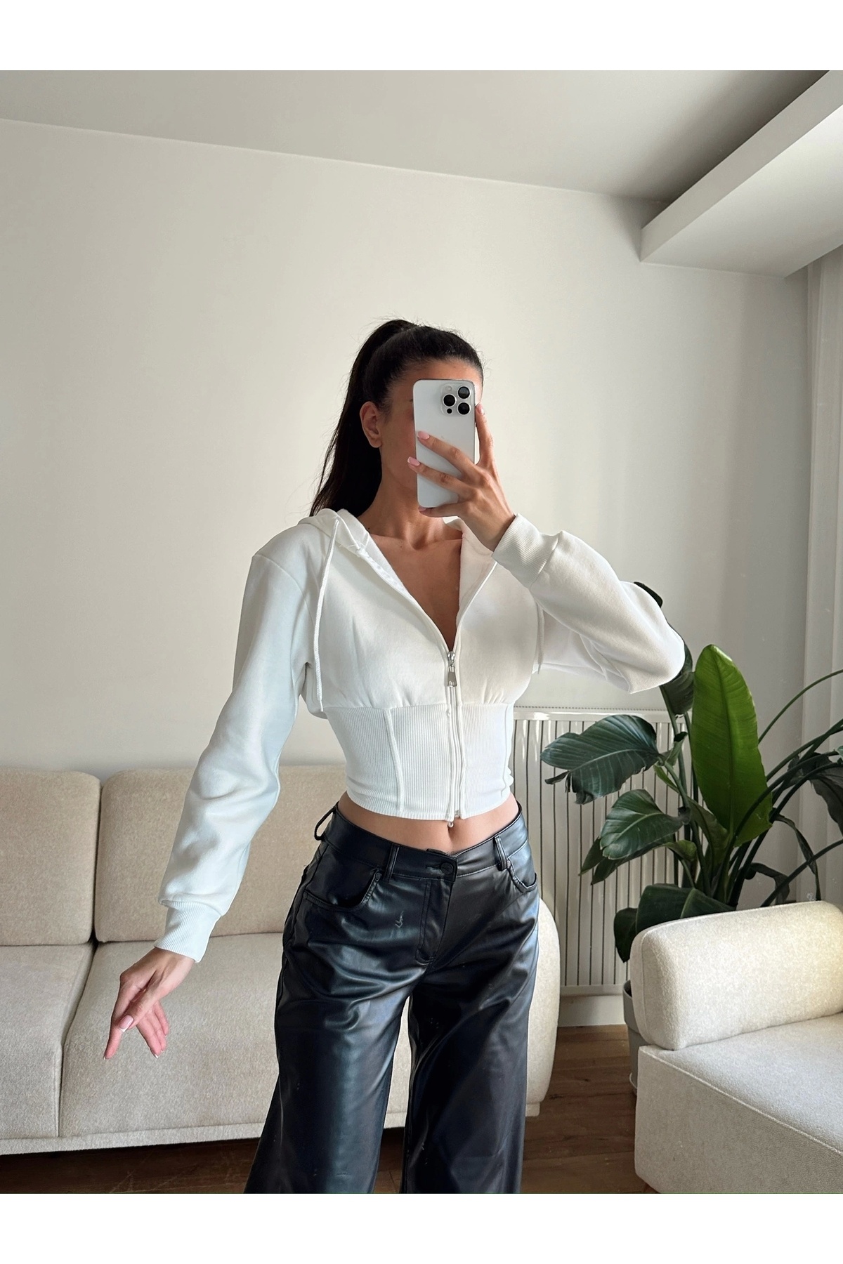 Bel Korse Kapşonlu Hırka - BEYAZ Bel Korse Kapşonlu Hırka - BEYAZ P18106S2216 L