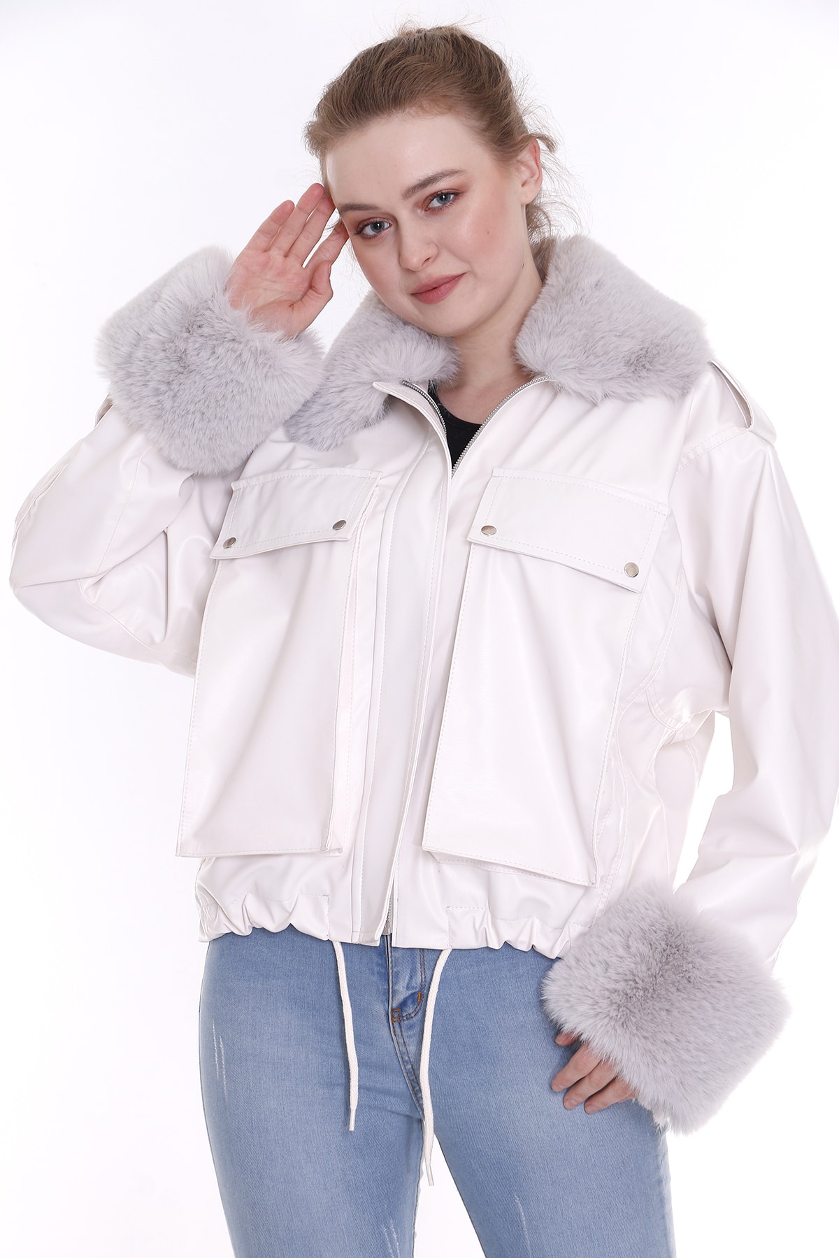 Suni Deri Kürklü Pembe Kadın Mont Suni Deri Kürklü Pembe Kadın Mont RPJ10111 L