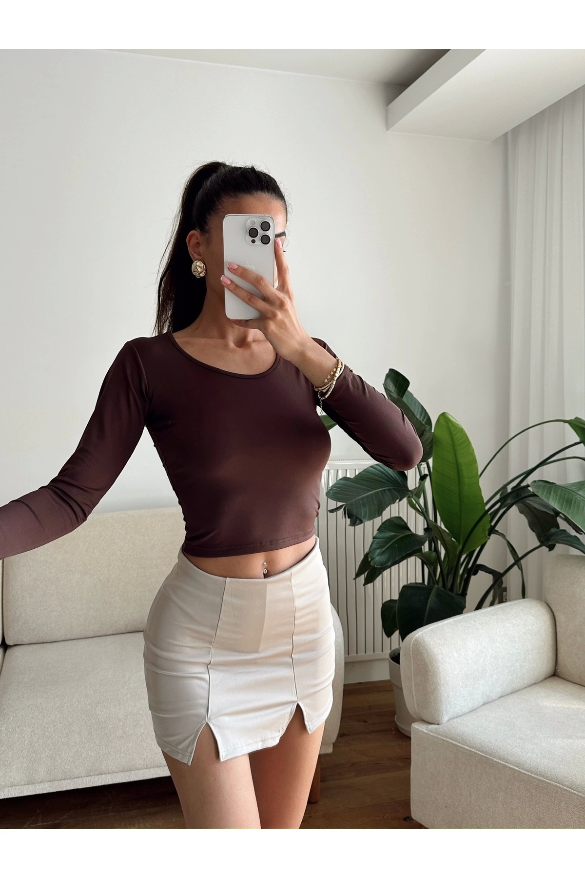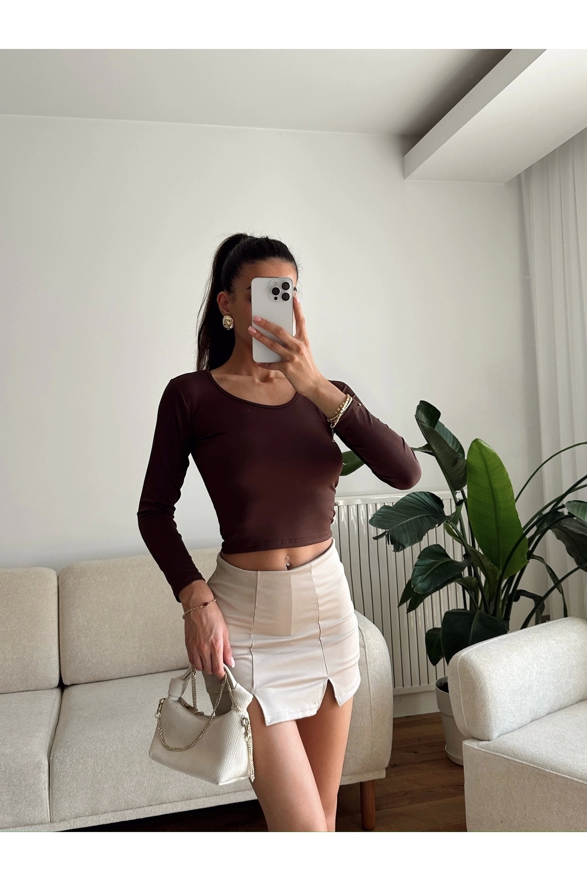 Bisiklet Yaka Crop - KAHVE Bisiklet Yaka Crop - KAHVE P18055S9162 L
