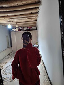 Kırmızı Bisiklet Yaka Oversize Kadın Triko Kazak Kırmızı Bisiklet Yaka Oversize Kadın Triko Kazak sparkovrsz22 XL