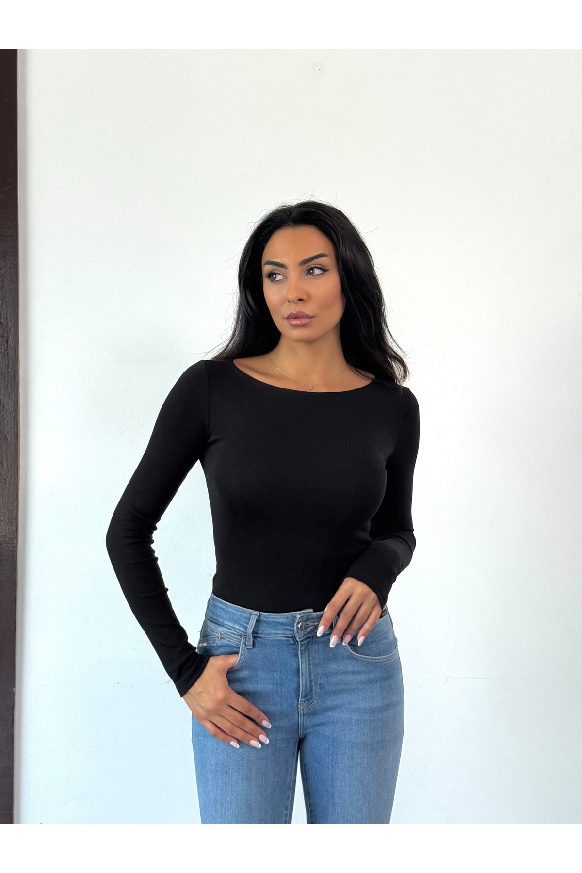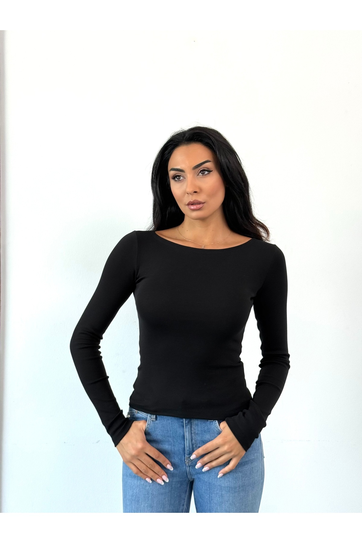 Kayık Yaka Uzun Kollu Top-Siyah Kayık Yaka Uzun Kollu Top-Siyah kyk1 40
