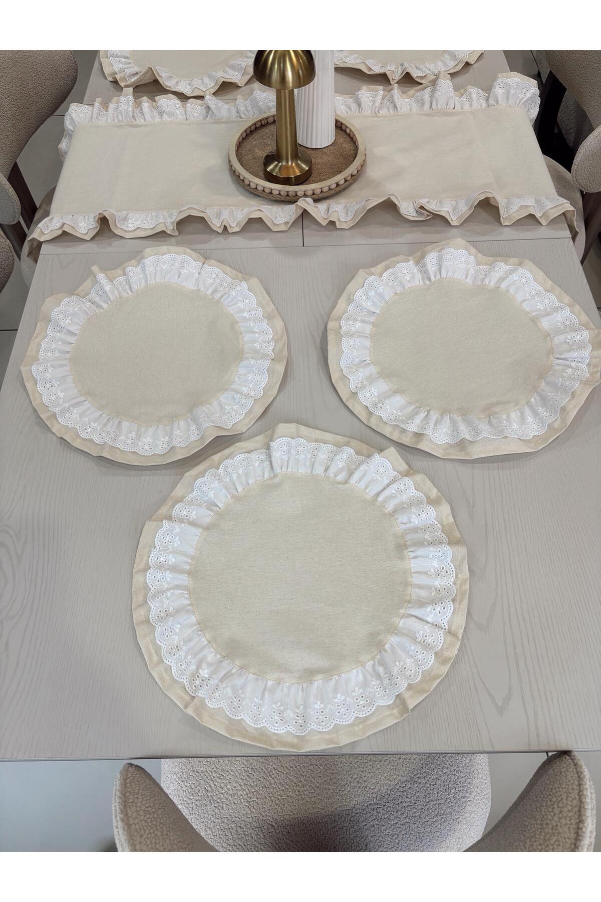 Ham Keten 7 Parça Fisto Fırfırlı Set 6 Adet Amerikan Servisi Supla + 1 Adet Fırfırlı Runner Ham Keten 7 Parça Fisto Fırfırlı Set 6 Adet Amerikan Servisi Supla + 1 Adet Fırfırlı Runner takım367 تک سایز