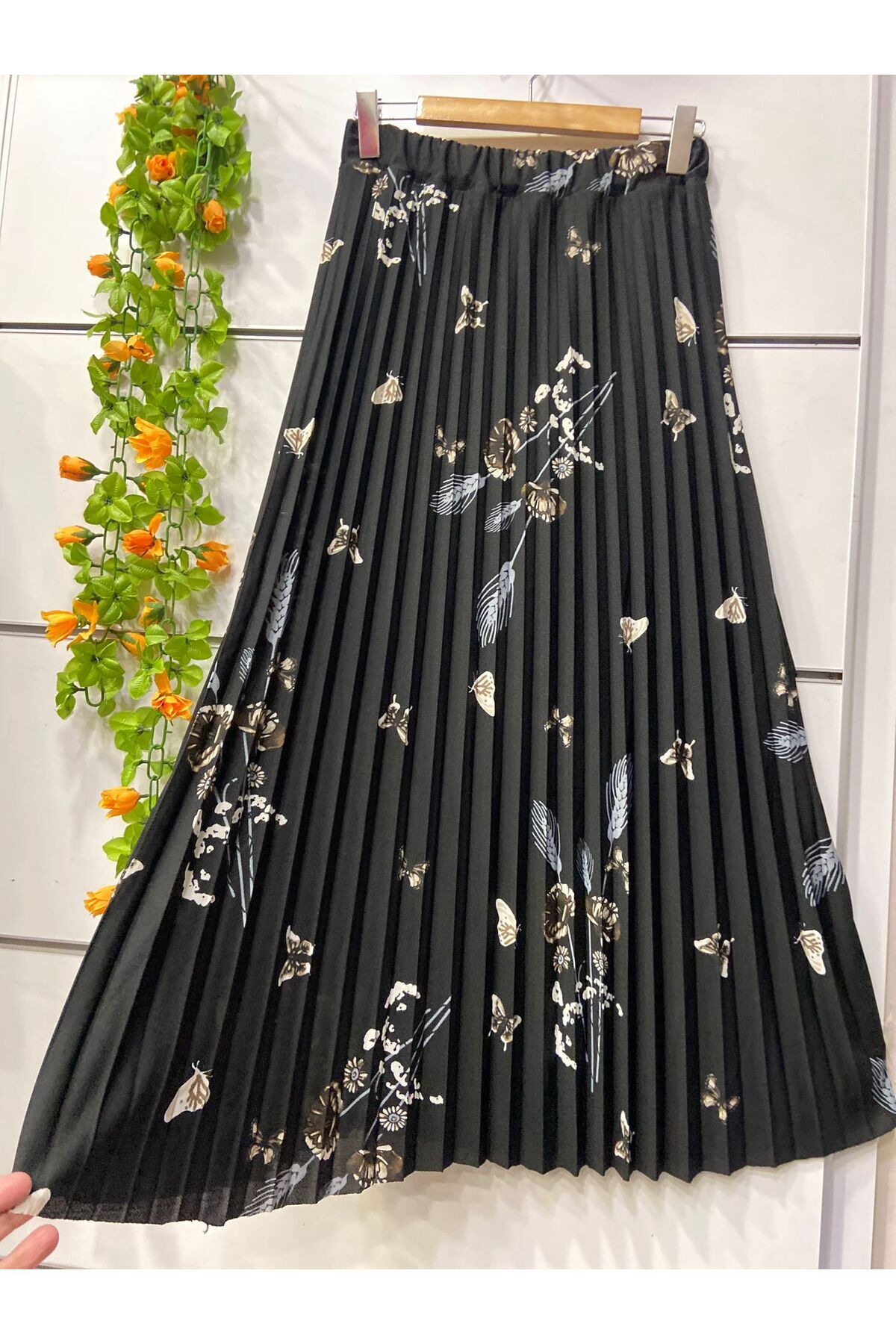 Desenli pileli krep etek astarlı Desenli pileli krep etek astarlı 977436764567 L