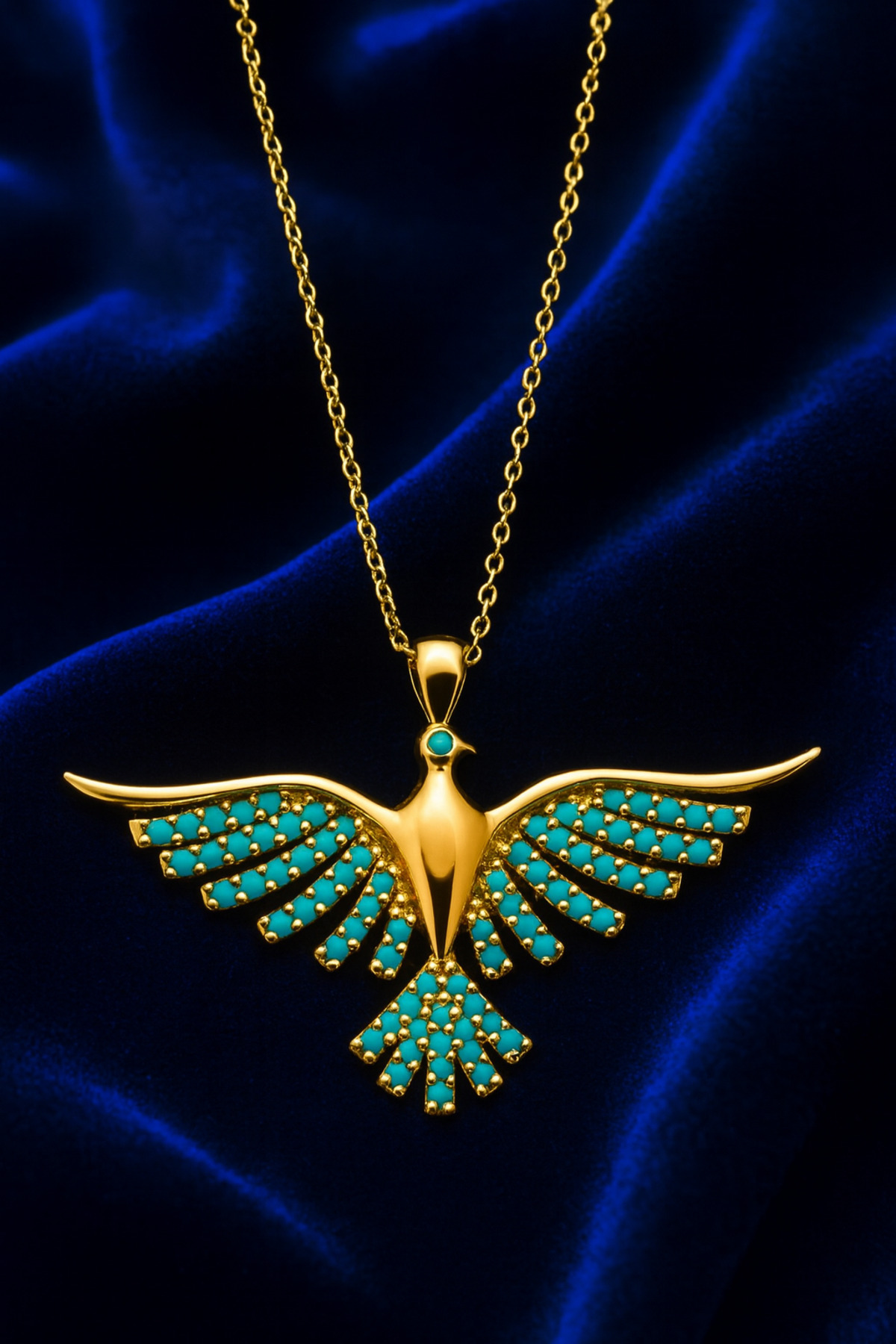 (Işıklı Kutusunda) Yeşil Taşlı Altın Kaplama Anka Kuşu Kolye – 925 Ayar Gümüş Zarif Tasarım (Işıklı Kutusunda) Yeşil Taşlı Altın Kaplama Anka Kuşu Kolye – 925 Ayar Gümüş Zarif Tasarım ANKAKUŞU3 45 cm