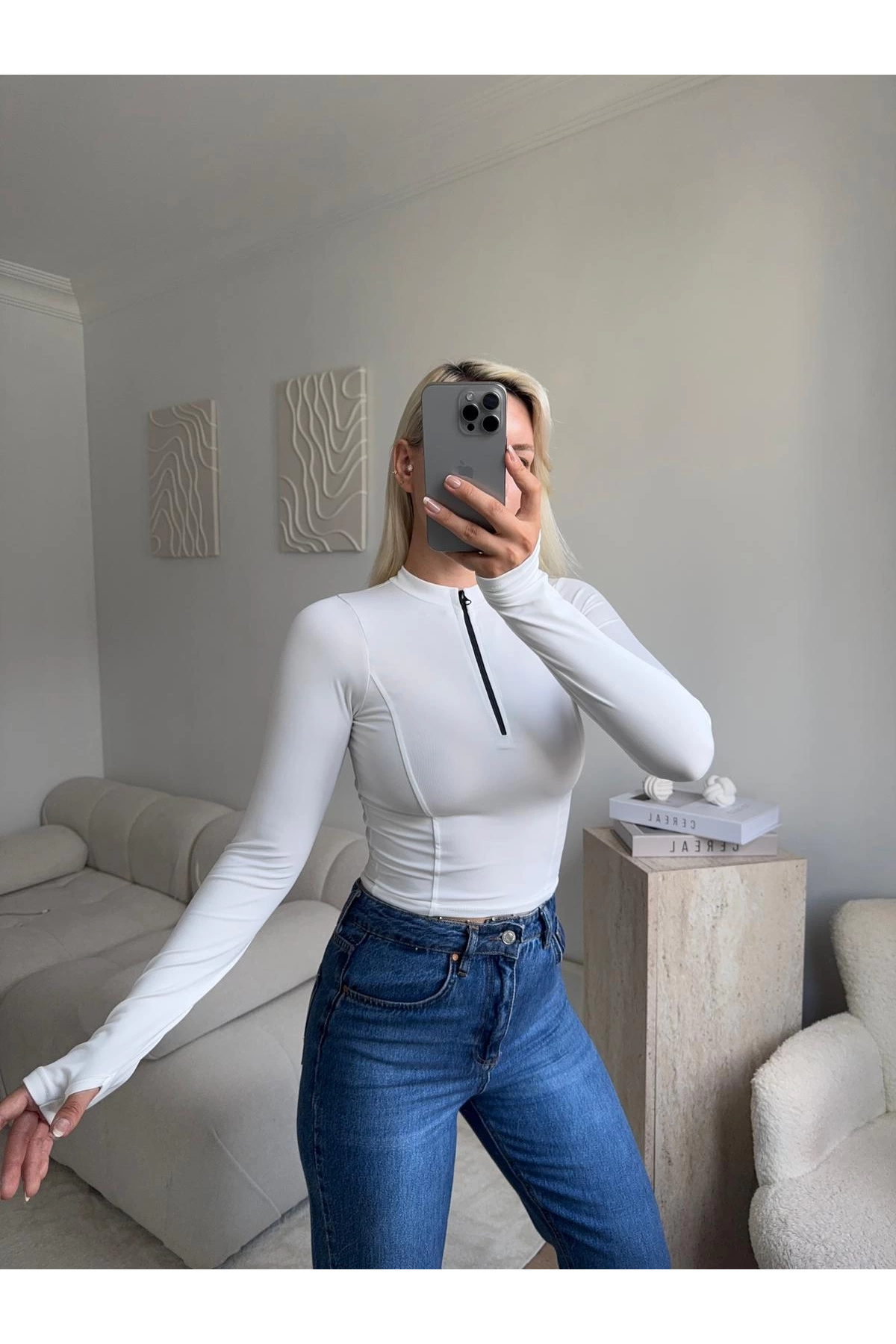 Parmak Geçmeli Fermuar Crop - BEYAZ Parmak Geçmeli Fermuar Crop - BEYAZ P3494S5150 XL