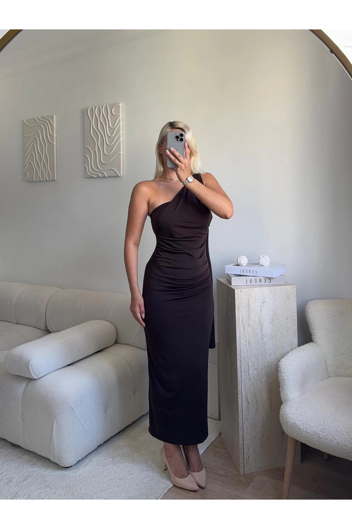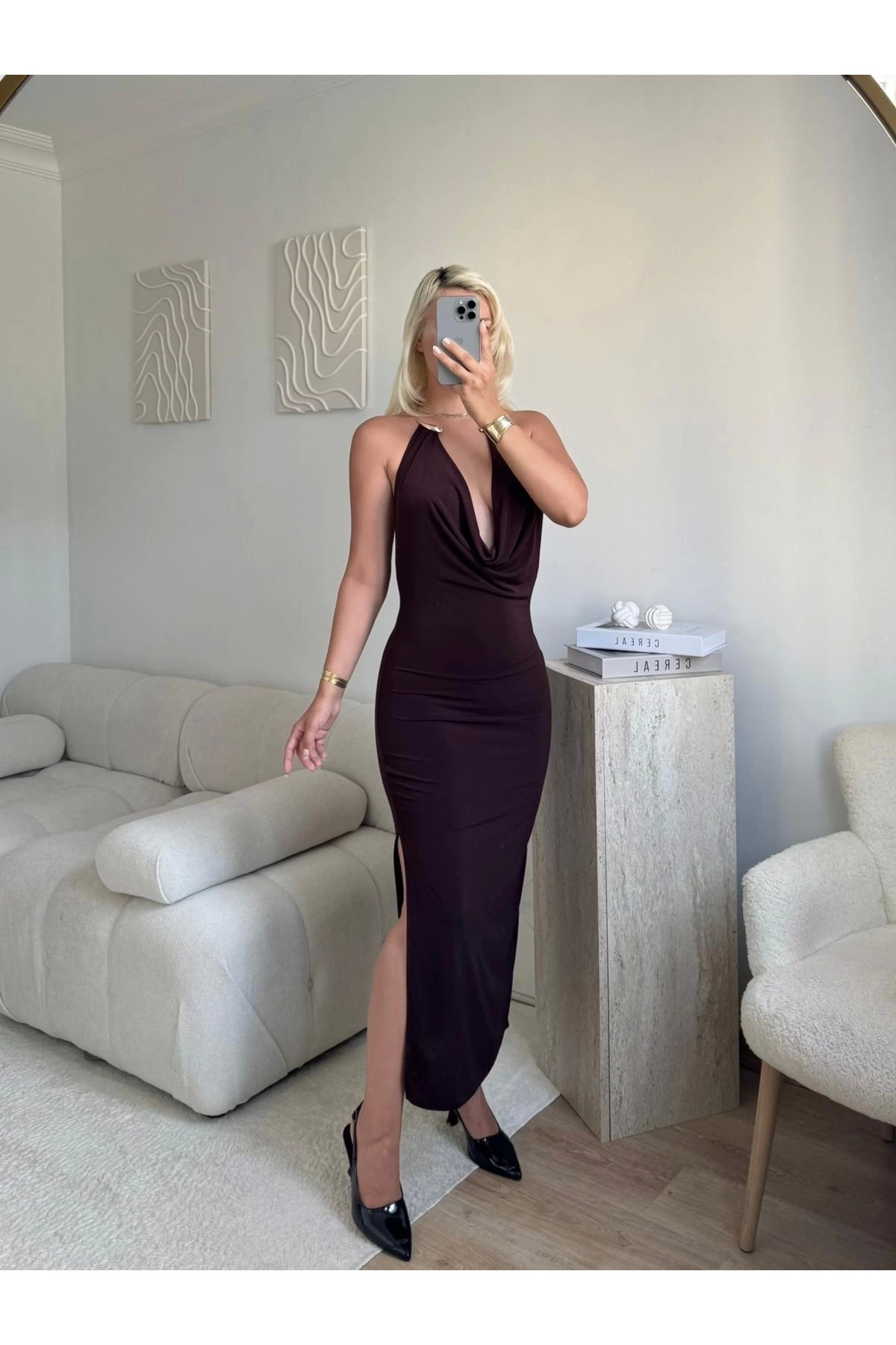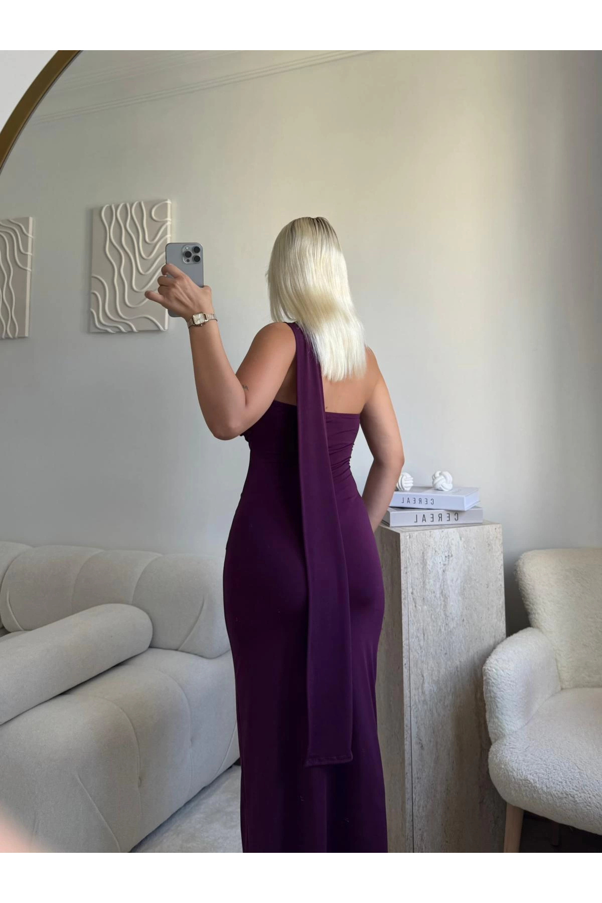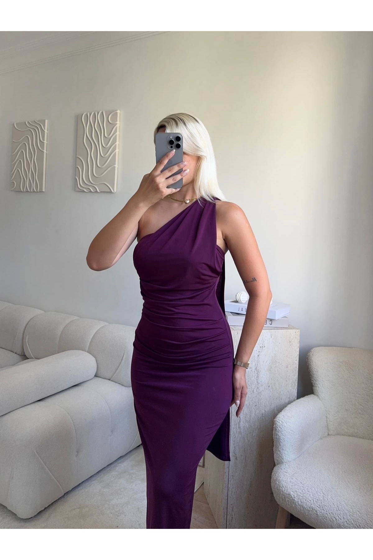 Boyun Bağlamalı Drapeli Elbise - MOR Boyun Bağlamalı Drapeli Elbise - MOR P3542S4049 XL