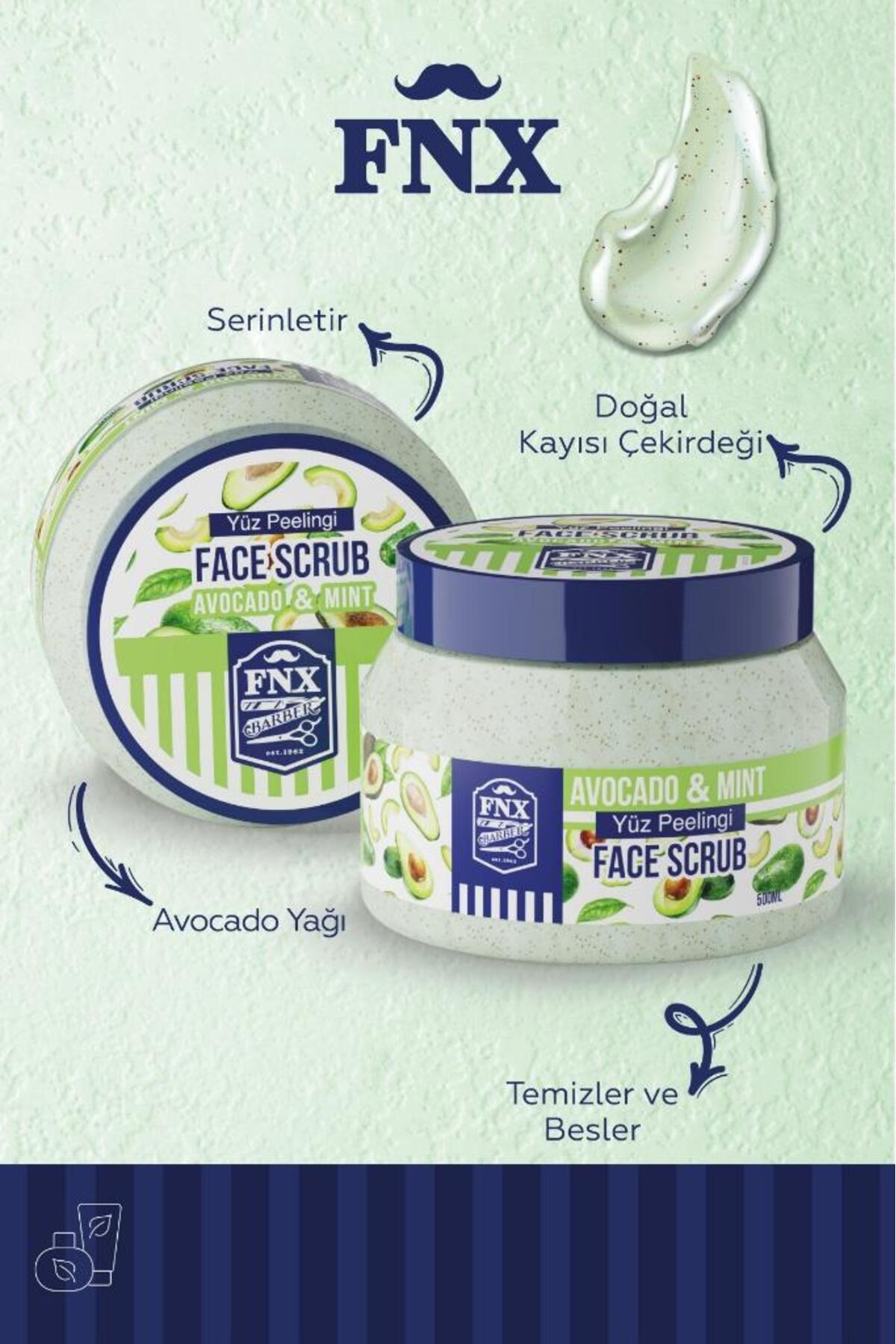FNX Barber Face Scrub 500 Ml Avokado & Mint FNX Barber Face Scrub 500 Ml Avokado & Mint FNX-31 تک سایز