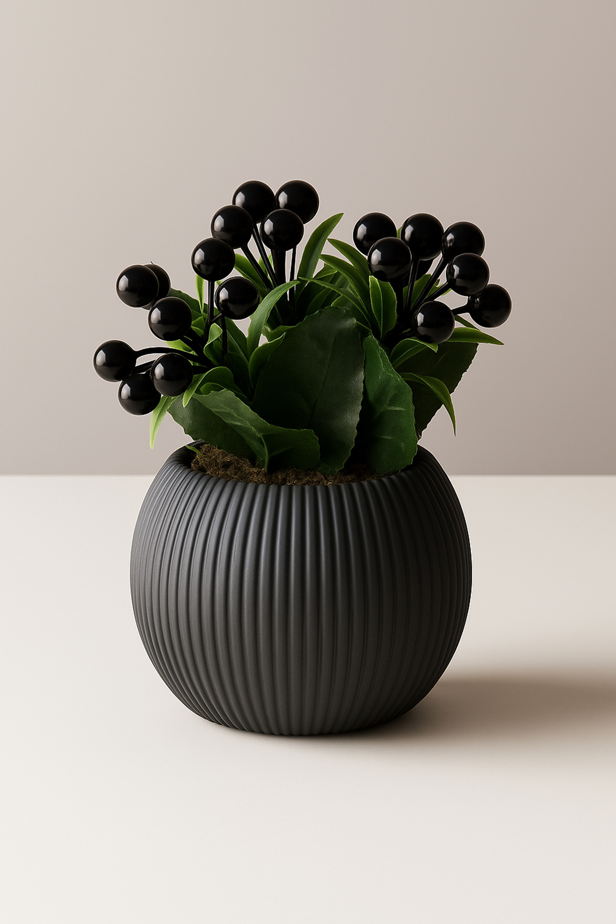 Lüks Orta Saksıda Taş Yosunlu Yapay Çiçek Kokina Demeti Ağacı