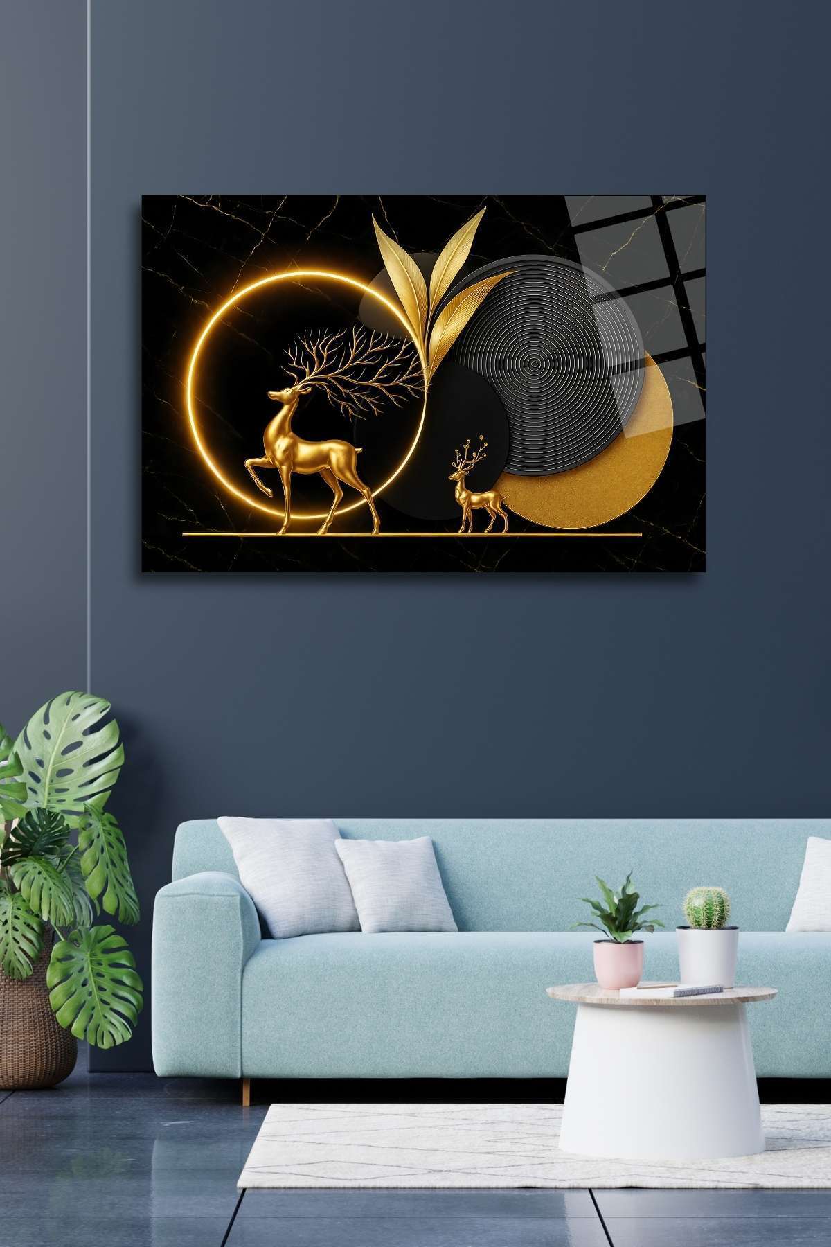 Altın Geyik ve Daireler Cam Tablo 367 Altın Geyik ve Daireler Cam Tablo 367 hmds.367 60 x 90