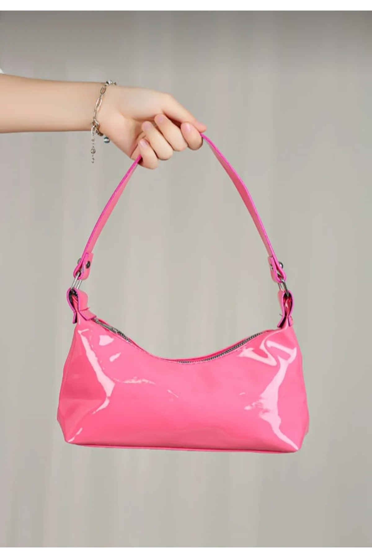 Parlak Rugan Baget Tek Gözlü El Kol ve Omuz Çantası Parlak Rugan Baget Tek Gözlü El Kol ve Omuz Çantası cntx100 تک سایز