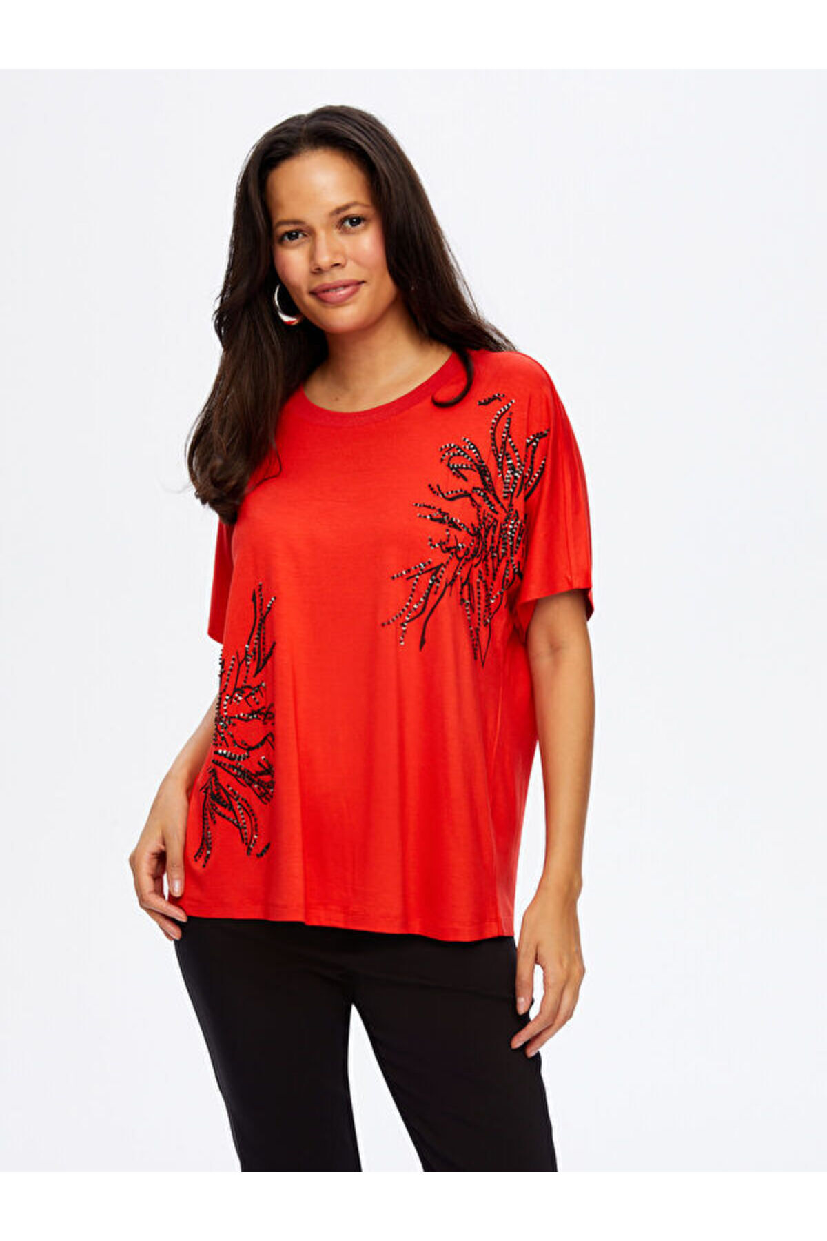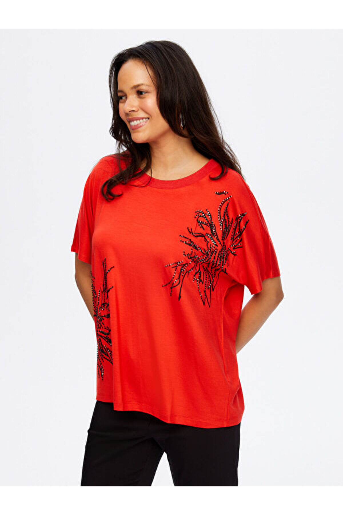Boncuk Nakış Ve Baskılı Yuvarlak Yaka Düşük Kol T-Shırt W26TSH069 Boncuk Nakış Ve Baskılı Yuvarlak Yaka Düşük Kol T-Shırt W26TSH069 UW26TSH069 XL