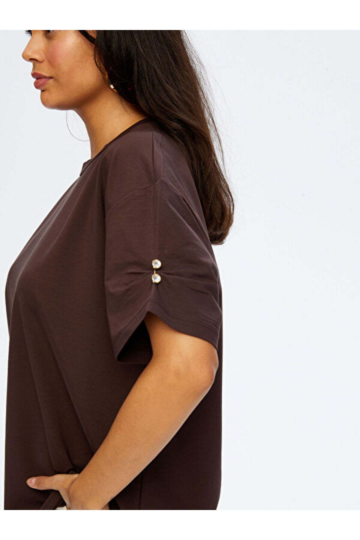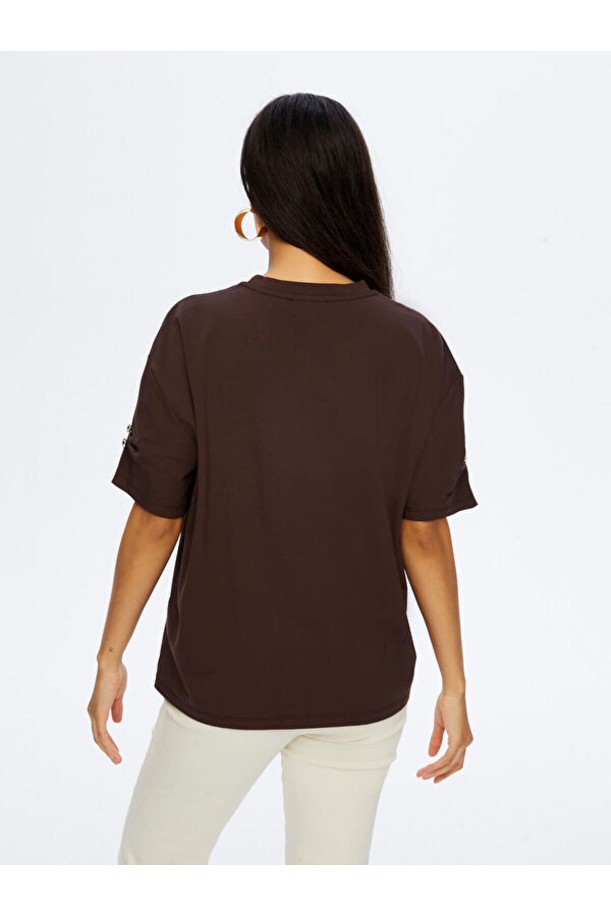 Kolları Taş Detaylı Yuvarlak Yaka Tshirt W26TSH088 Kolları Taş Detaylı Yuvarlak Yaka Tshirt W26TSH088 UW26TSH088 XL