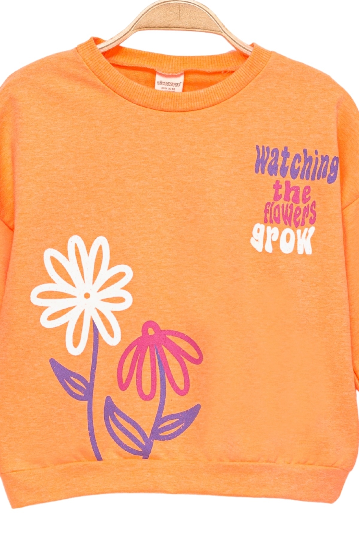 Kız Çocuk Sweatshirt Turuncu Uzun Kollu Yazı ve Çiçek Desenli Çocuk Sweat Kız Çocuk Sweatshirt Turuncu Uzun Kollu Yazı ve Çiçek Desenli Çocuk Sweat 1687-2 5-6 Yaş