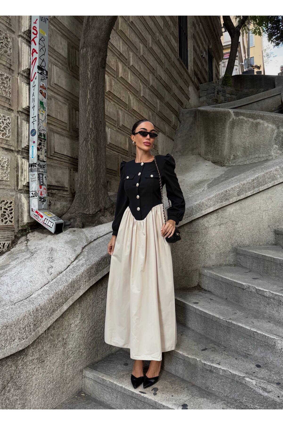 Vintage Gold Düğmeli Uzun Elbise Vintage Gold Düğmeli Uzun Elbise vingoldüğuzunelbise L