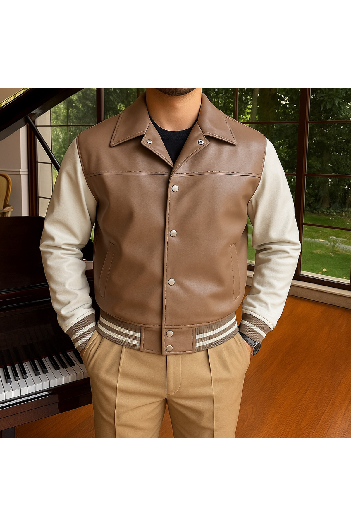 Old Money Erkek Deri Kolej Ceketi Old Money Erkek Deri Kolej Ceketi Oxford 2XL