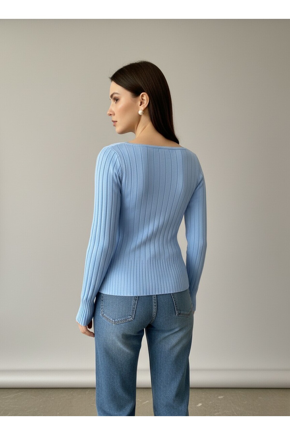 Kadın Bebe Mavisi Uzun Kollu Kalın Fitilli Triko Bluz LVN-B103 Kadın Bebe Mavisi Uzun Kollu Kalın Fitilli Triko Bluz LVN-B103 M