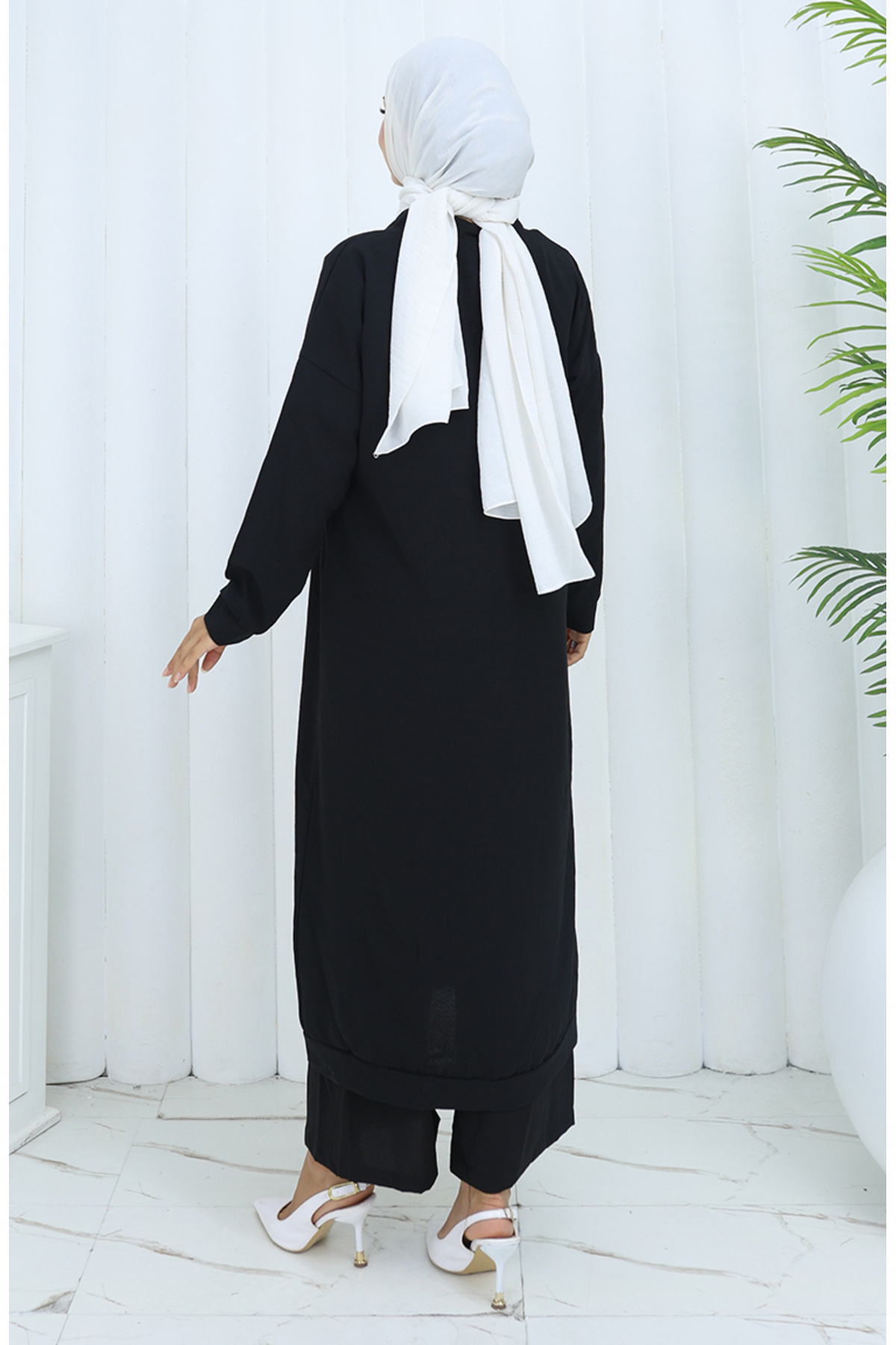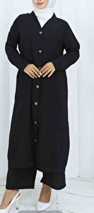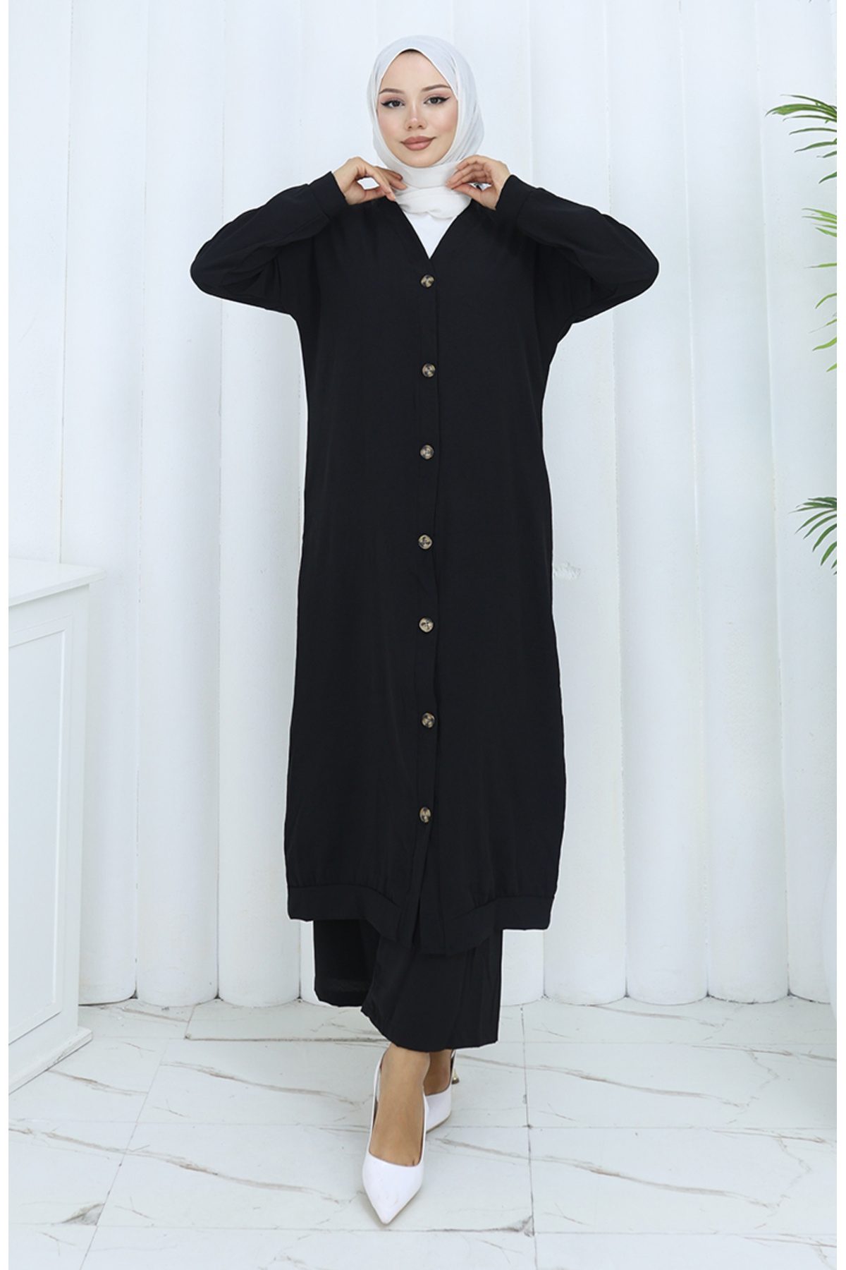 Boydan Düğmeli Hırka Pantolon İkili Takım 0138-01 Siyah Boydan Düğmeli Hırka Pantolon İkili Takım 0138-01 Siyah YNAZRA0138 50-52