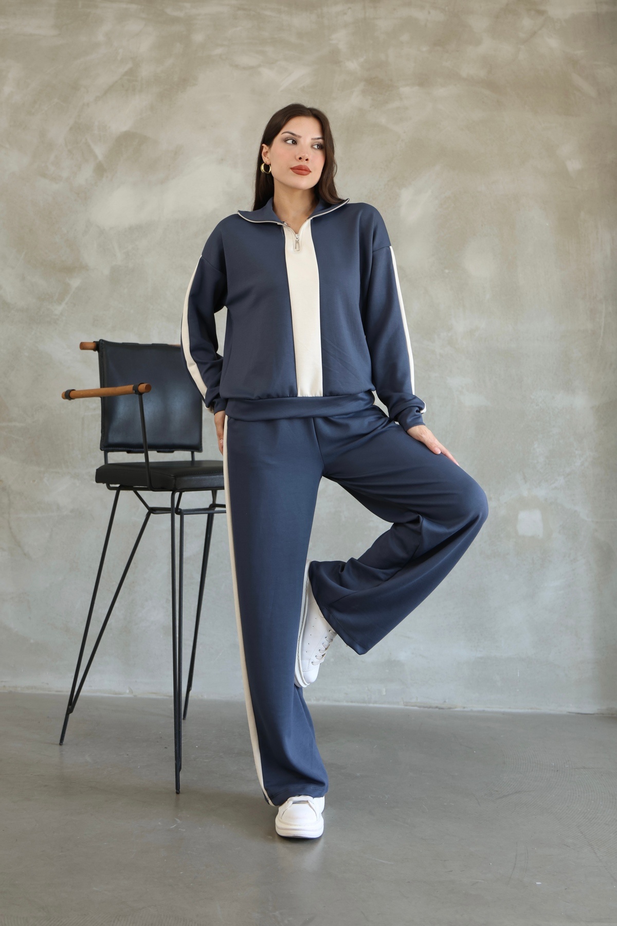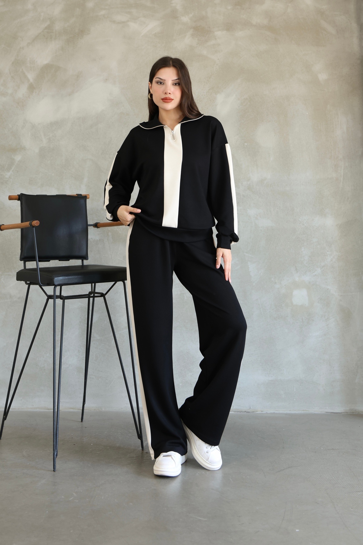 Garnili Şerit Detaylı Fermuarlı Modal Kumaş Eşofman Takım Garnili Şerit Detaylı Fermuarlı Modal Kumaş Eşofman Takım 4585788574878PEZVOKİ XL