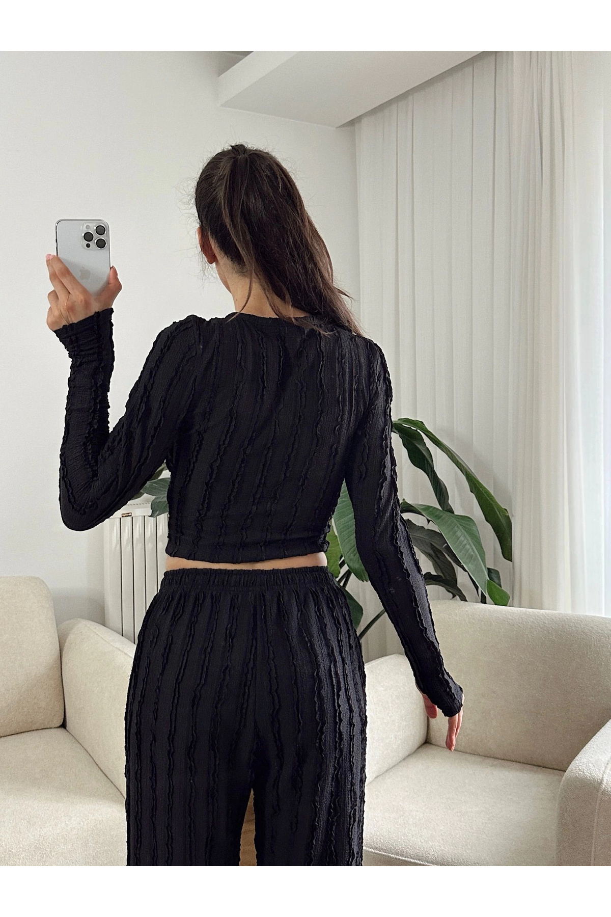 Fitilli Ters Dikiş İkili Takım - SİYAH Fitilli Ters Dikiş İkili Takım - SİYAH P18131S5933 L