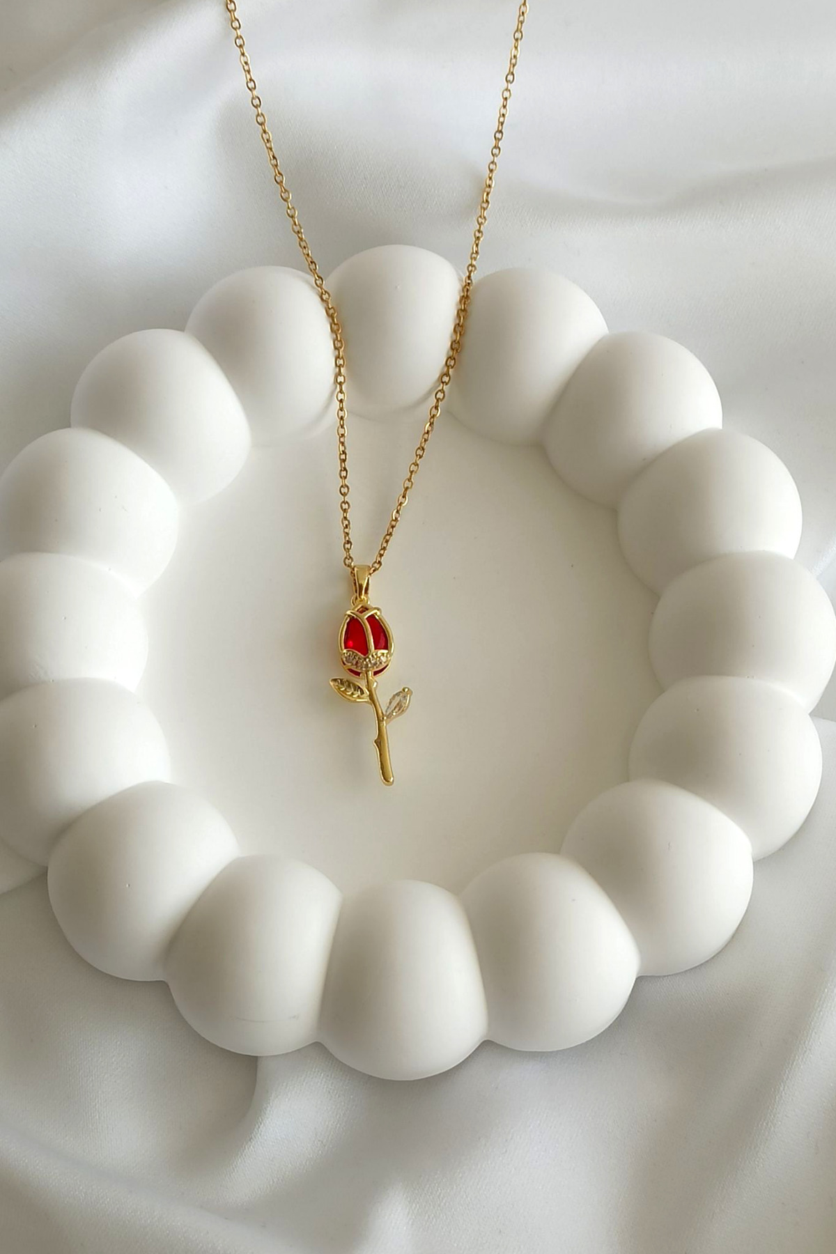 Zarif Kırmızı Taşlı Lale Kolye Altın ve Gümüş Renk Seçenekli Paslanmaz Çelik Kolye Zarif Kırmızı Taşlı Lale Kolye Altın ve Gümüş Renk Seçenekli Paslanmaz Çelik Kolye 78401101 45 cm