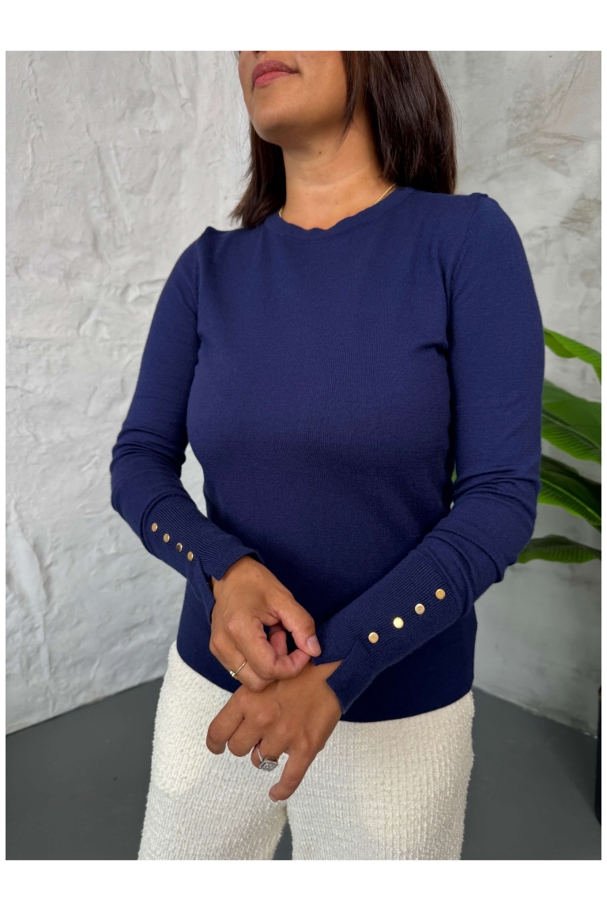 Lacivert Kolu Düğmeli Basic Triko Bluz Lacivert Kolu Düğmeli Basic Triko Bluz 2246 Standart