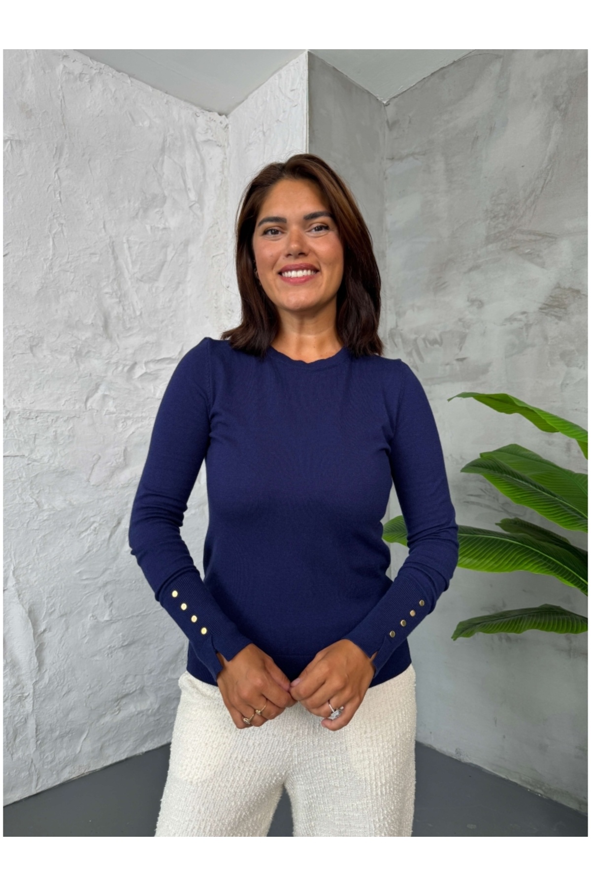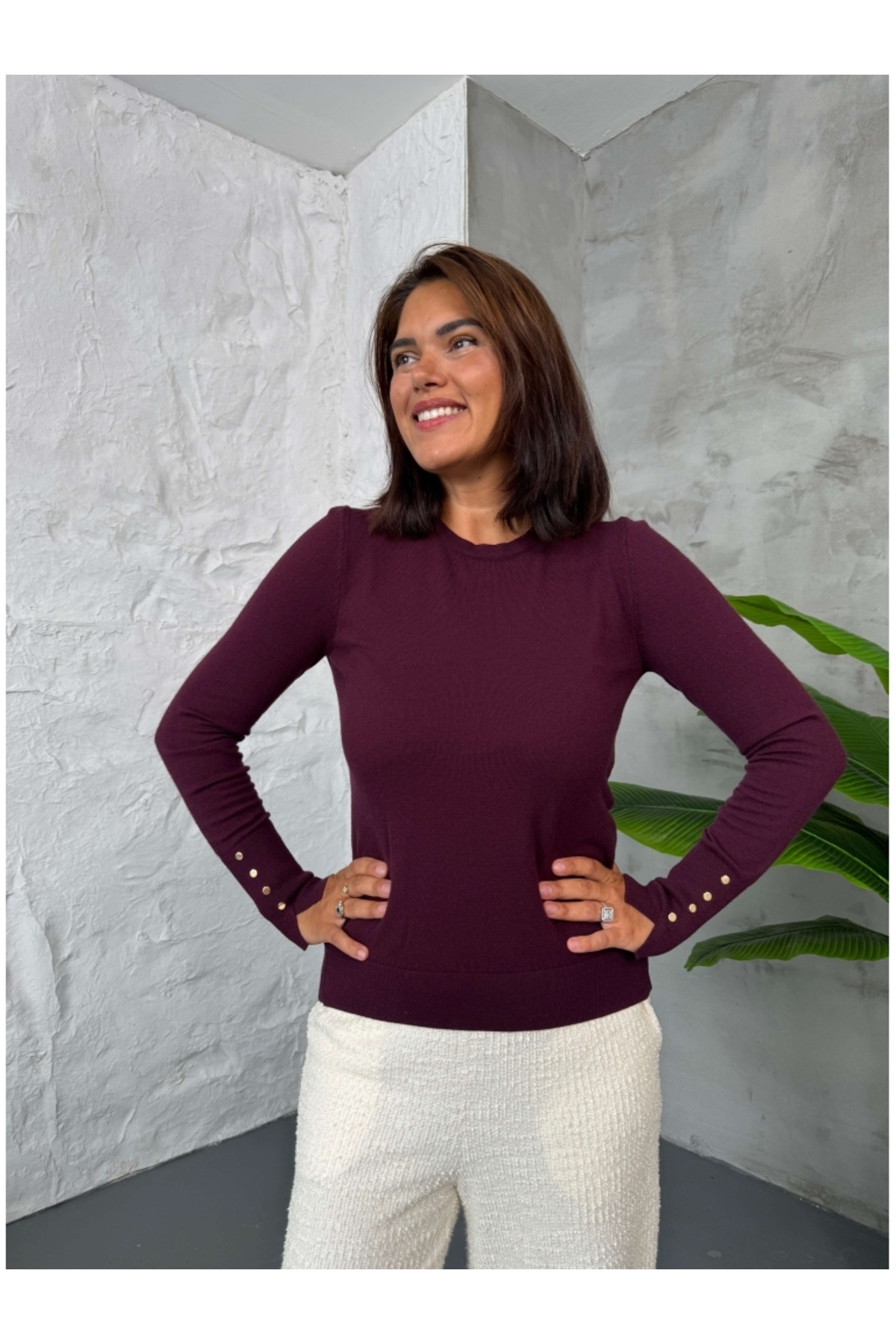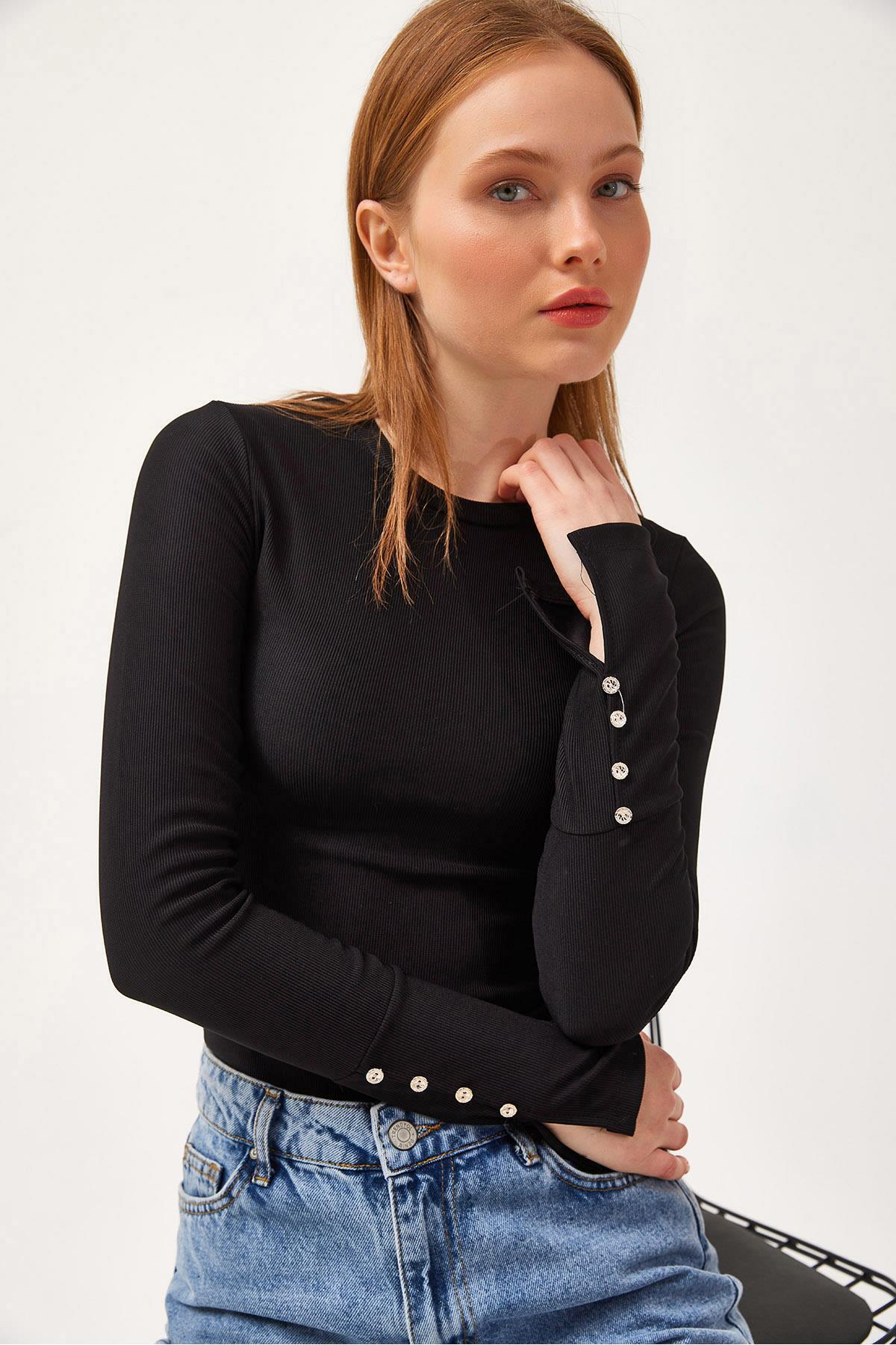 Kahverengi Kolu Düğmeli Basic Triko Bluz Kahverengi Kolu Düğmeli Basic Triko Bluz 2246 Standart