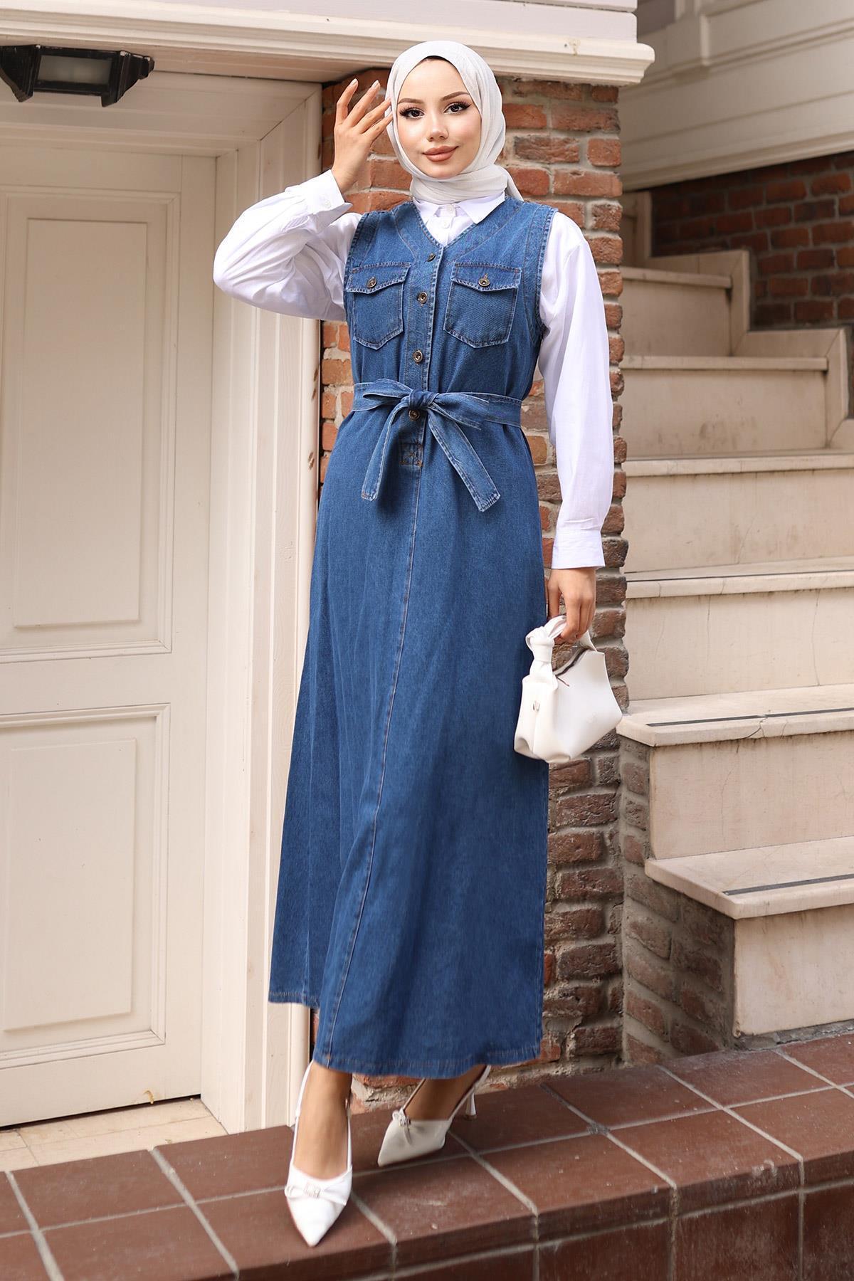 Boydan Düğmeli V Yaka Sıfır Kol Kot Jile -Füme Boydan Düğmeli V Yaka Sıfır Kol Kot Jile -Füme TY197-6129 48