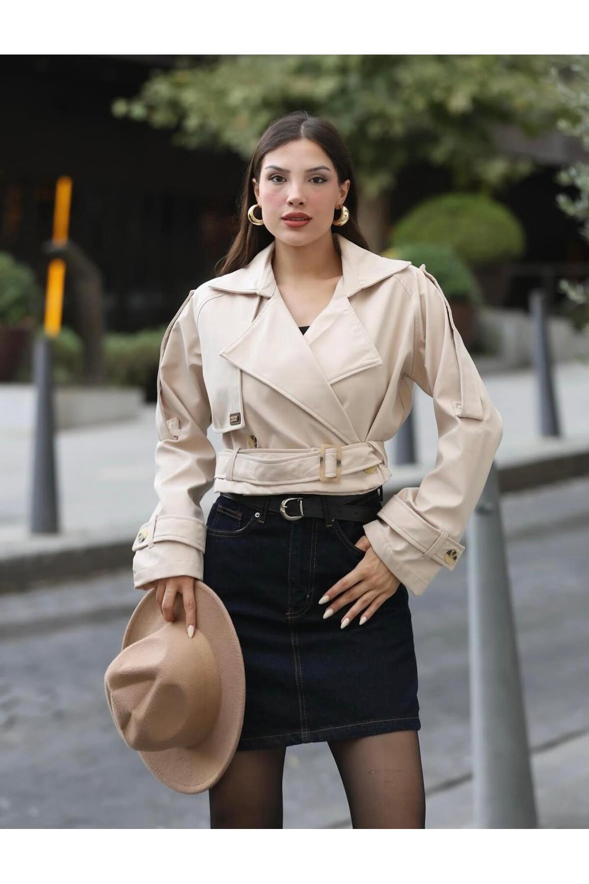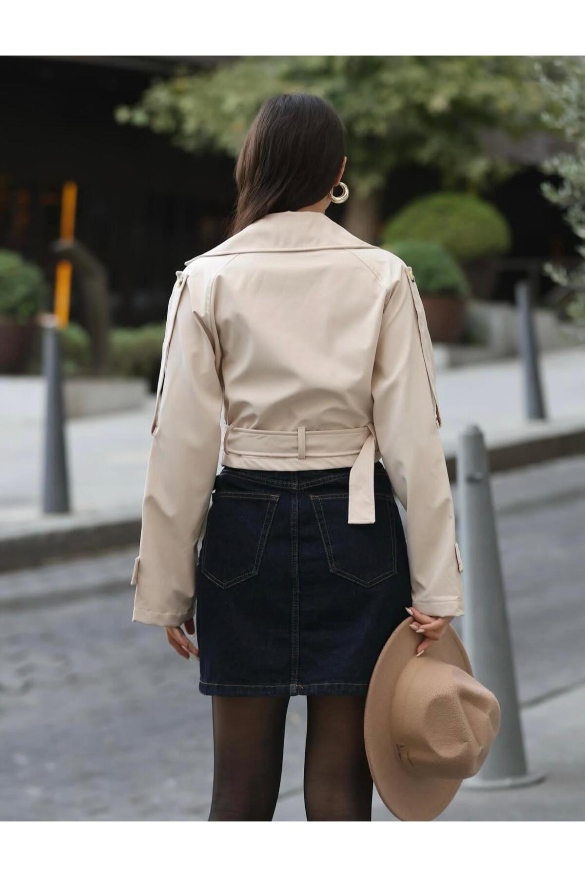 Kadın Soft Kumaş Kemerli Kısa Ceket Kadın Soft Kumaş Kemerli Kısa Ceket 006