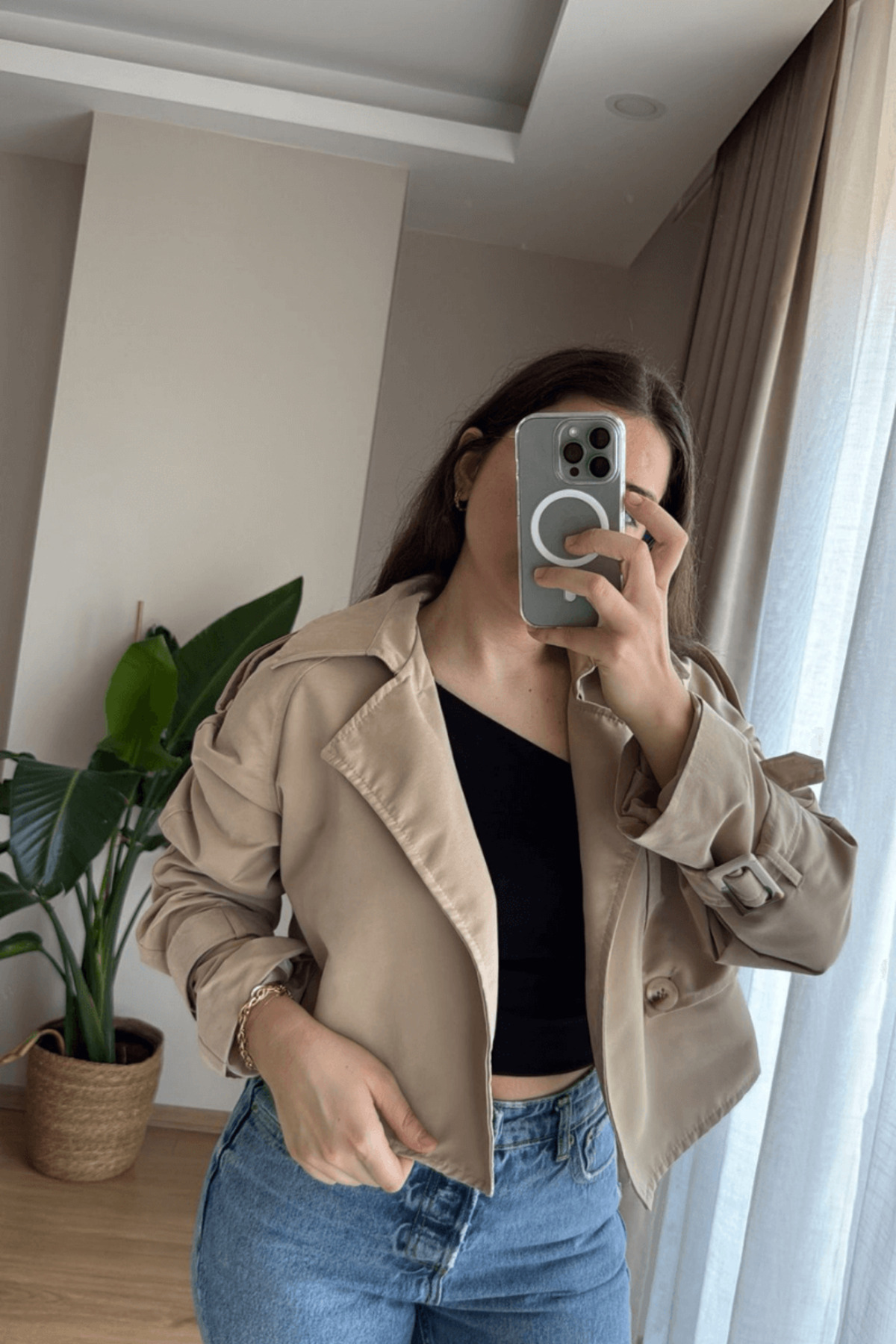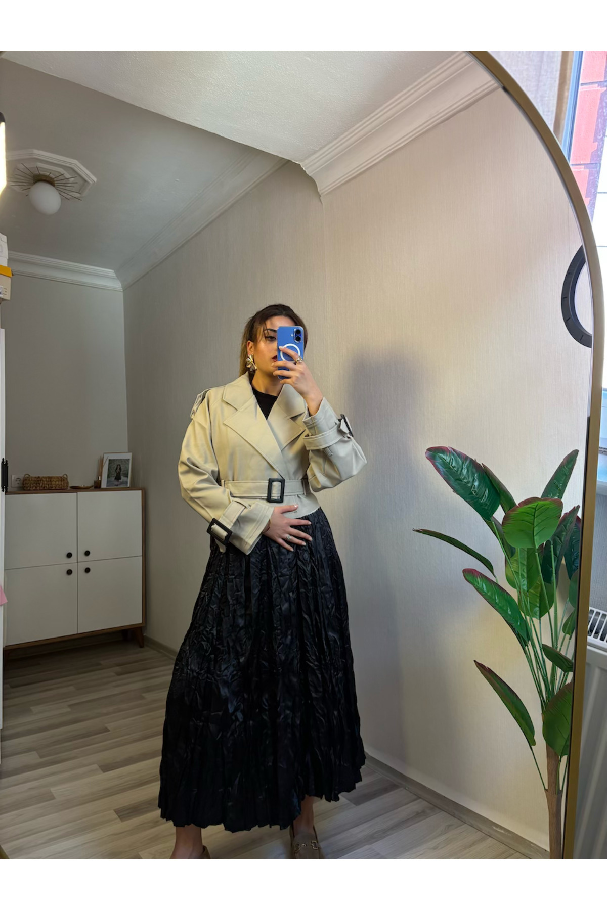 SİYAH KISA TRENÇKOT SİYAH KISA TRENÇKOT CE5671 Standart