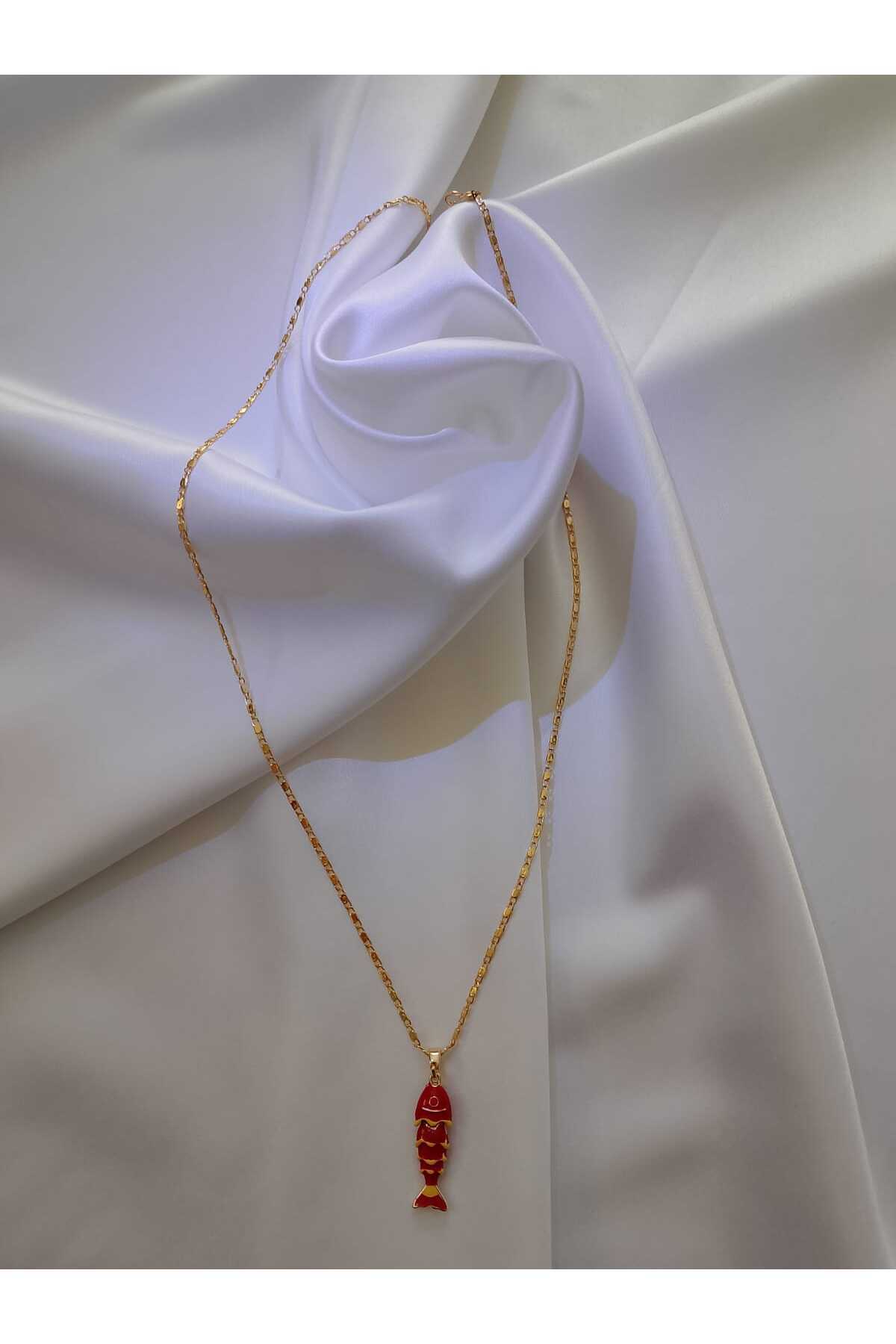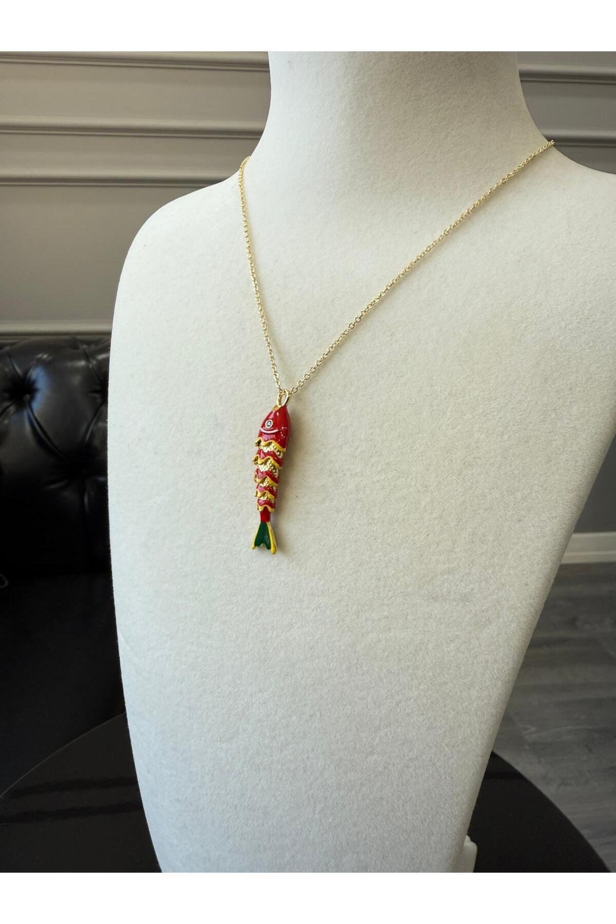 Kırmızı Mineli Balık çelik Şans Kolye Kırmızı Mineli Balık çelik Şans Kolye UTQY--2121VFC12 43 cm