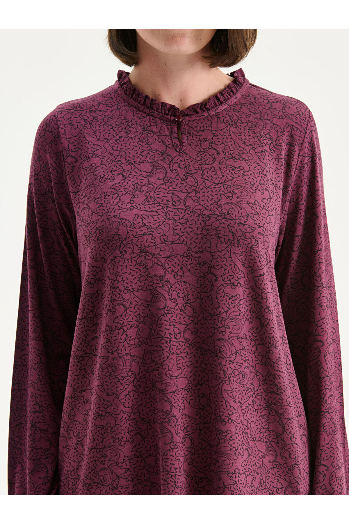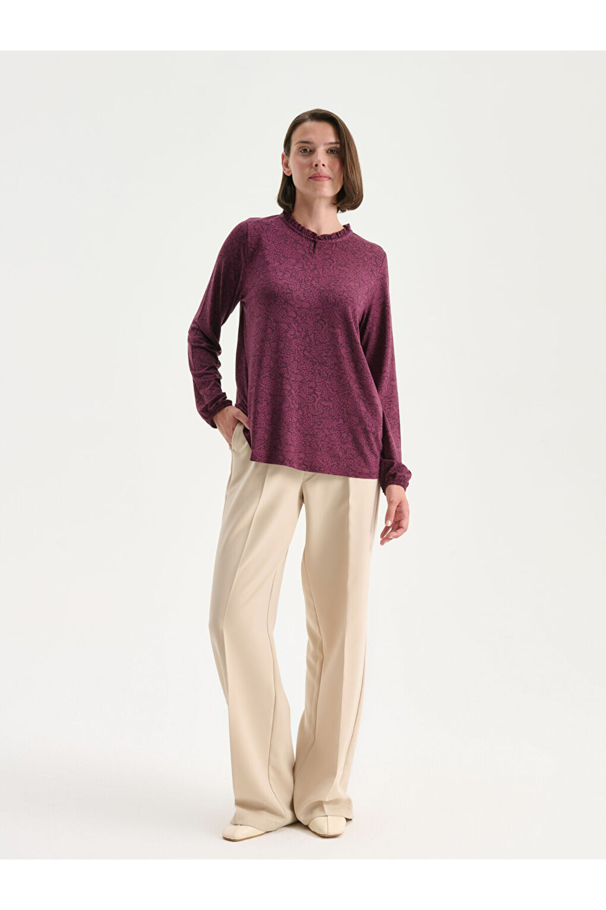 Mürdüm Bisiklet Yaka Desenli Bluz Mürdüm Bisiklet Yaka Desenli Bluz W5I704Z8 5XL