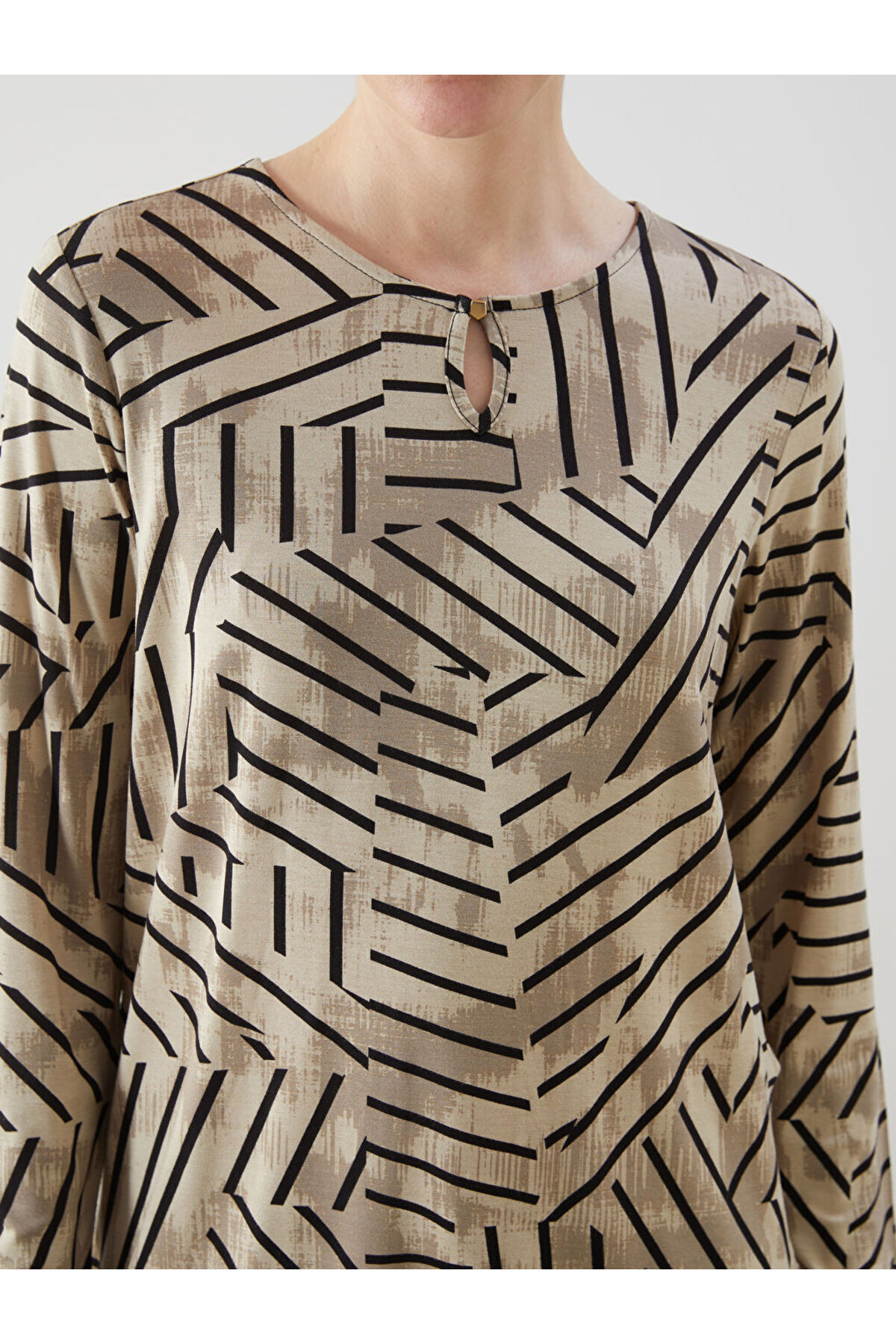 Bej Bisiklet Yaka Desenli Kadın Bluz Bej Bisiklet Yaka Desenli Kadın Bluz S5KN32Z8 2XL