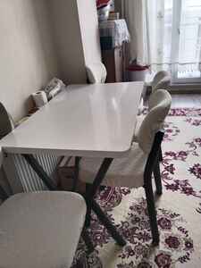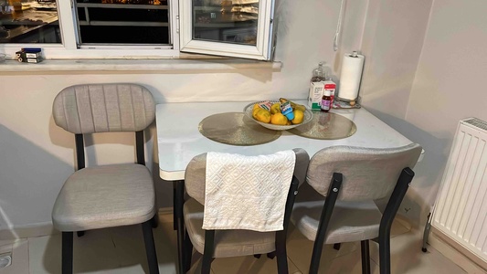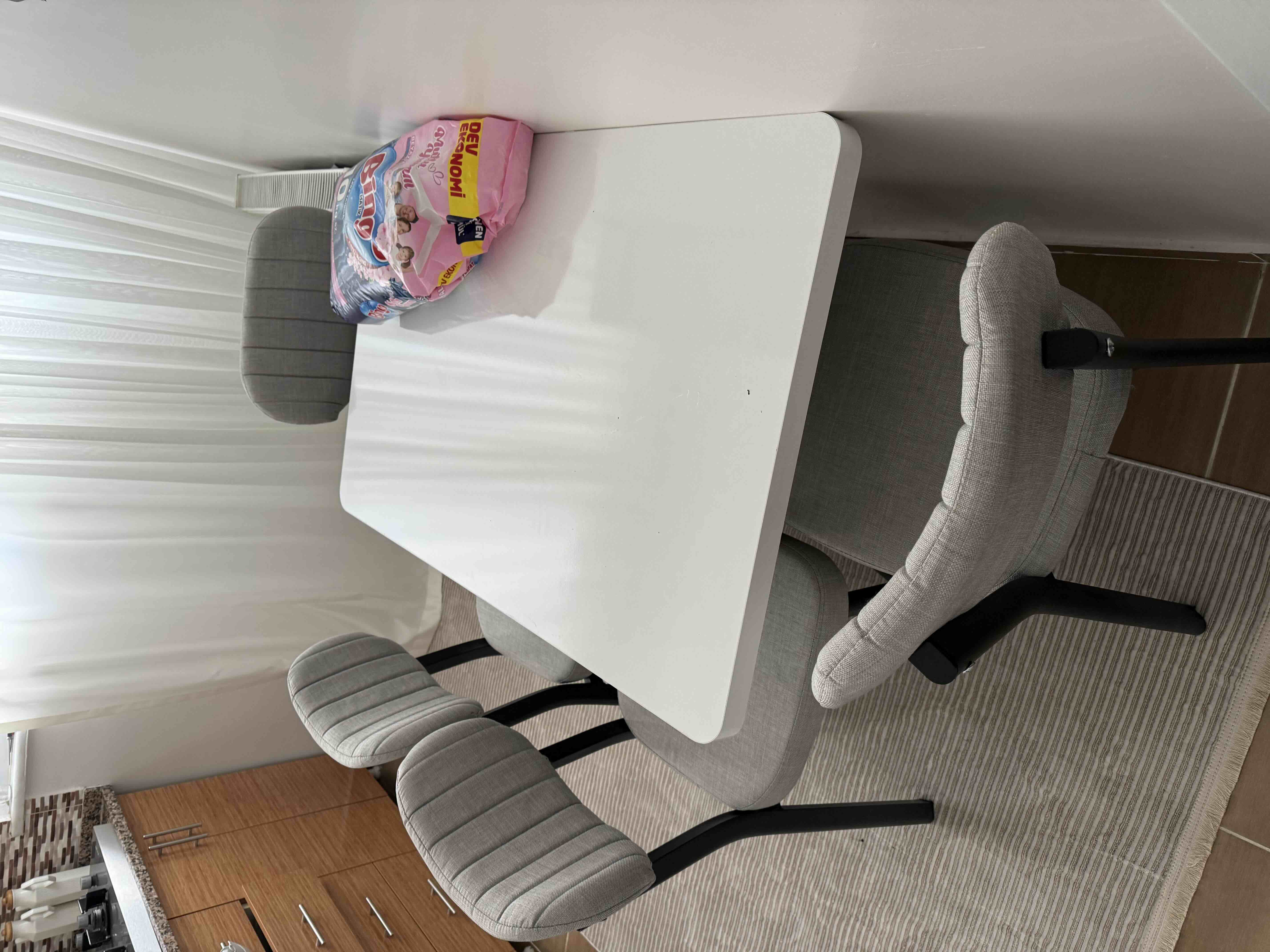 Gnr 70x110cm Sabit Beyaz Mutfak Masası Takımı, Yemek Masası, 4 Modern Gri Sandalye Gnr 70x110cm Sabit Beyaz Mutfak Masası Takımı, Yemek Masası, 4 Modern Gri Sandalye Gnr-2 تک سایز