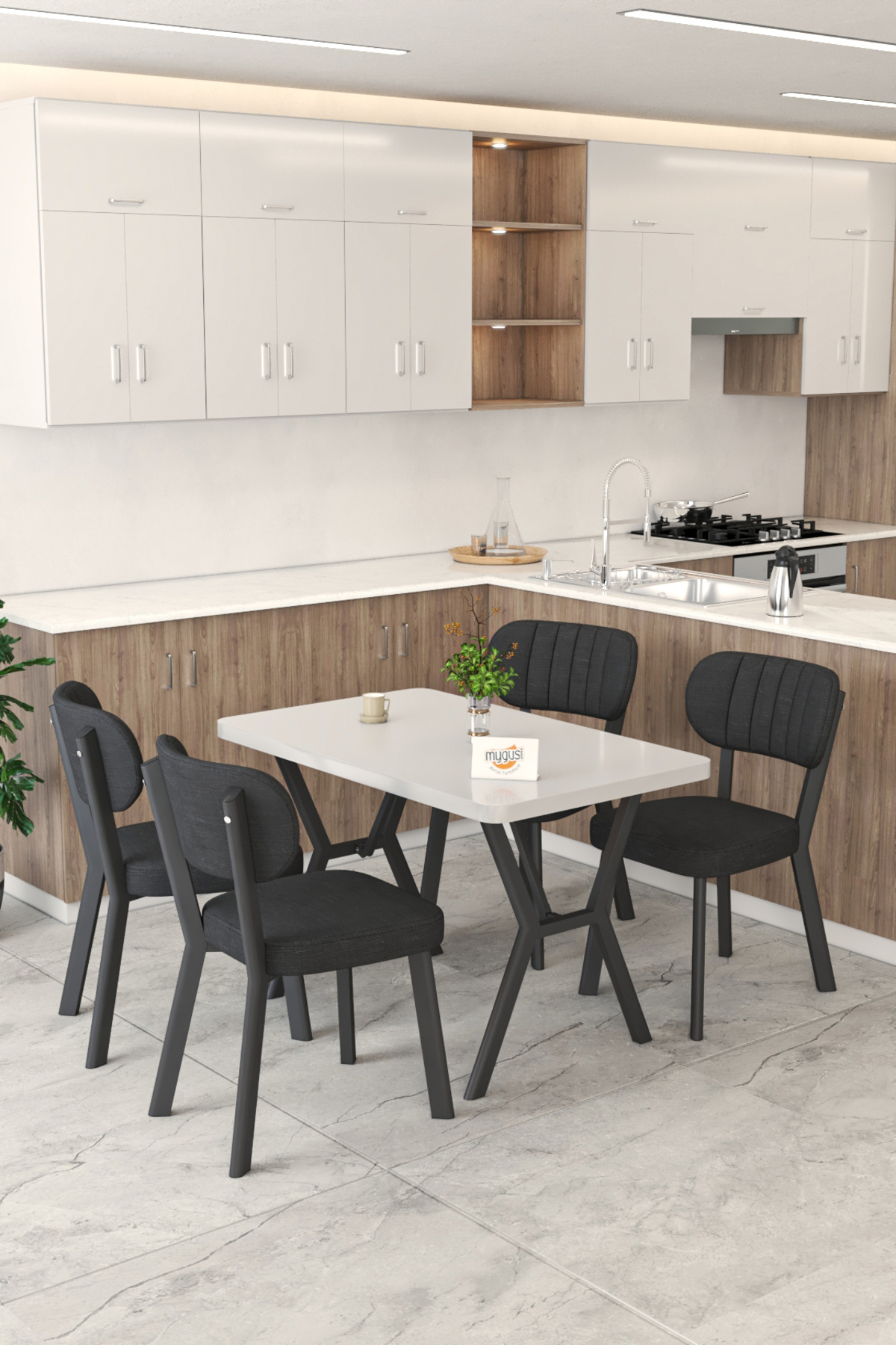 Gnr 70x110cm Sabit Beyaz Mutfak Masası Takımı, Yemek Masası, 4 Modern Siyah Sandalye Gnr 70x110cm Sabit Beyaz Mutfak Masası Takımı, Yemek Masası, 4 Modern Siyah Sandalye Gnr-2 تک سایز