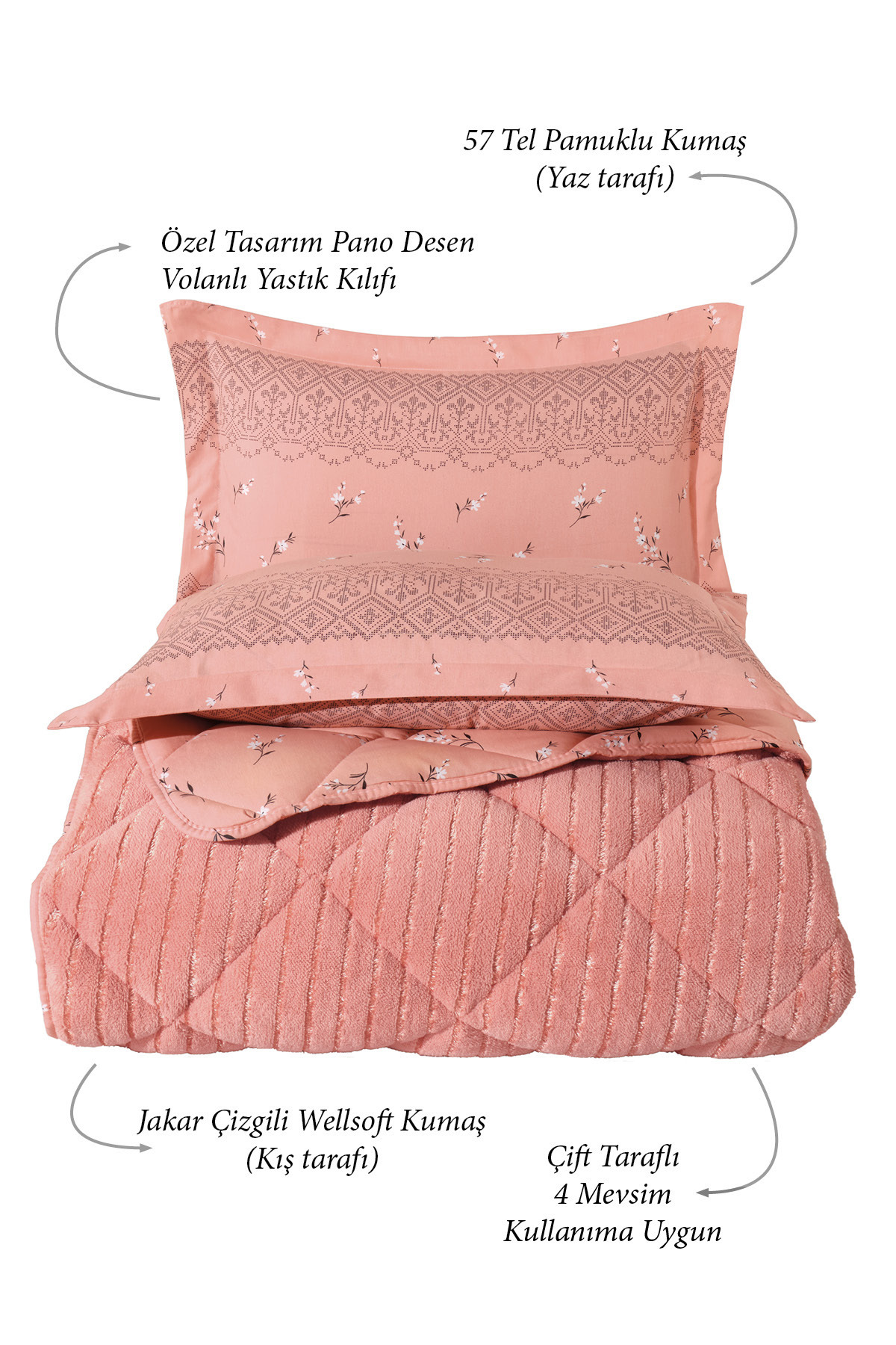 مشخصات فنی Striped Jakarlı Wellsoft Çift Kişilik Uyku Seti Lastikli Çarşaflı 4 Parça