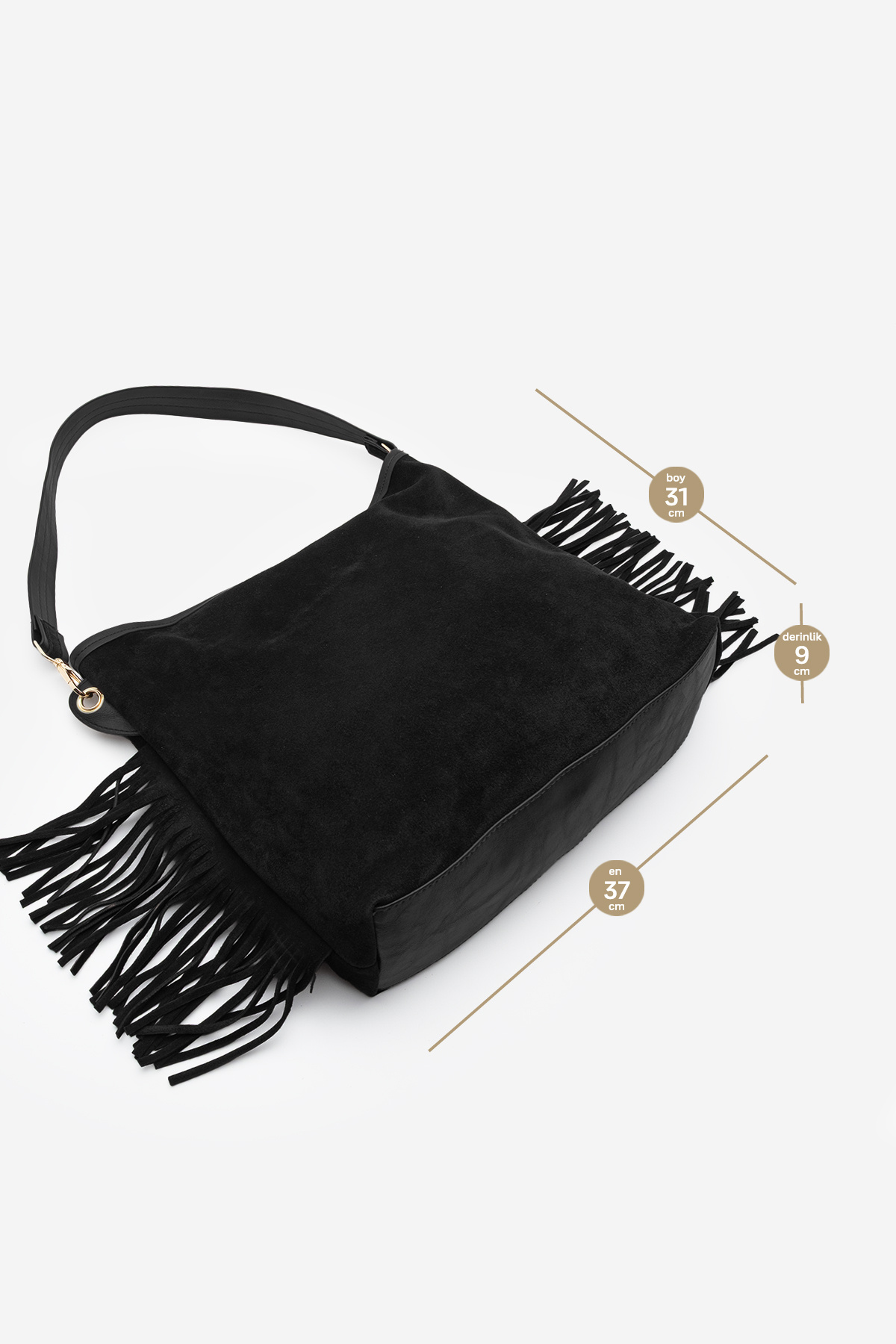 Kadın Hakiki Deri Püskül Detaylı El ve Omuz Çantası Soliga Siyah Süet Kadın Hakiki Deri Püskül Detaylı El ve Omuz Çantası Soliga Siyah Süet 32101183009 Standart