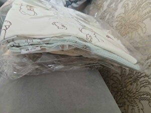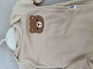 3'lü krem ayıcık nakışlı pamuk kumaş bebek takımı 3'lü krem ayıcık nakışlı pamuk kumaş bebek takımı Mstakım 9 Ay