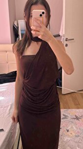 Boyun Fular Detaylı Uzun Elbise Boyun Fular Detaylı Uzun Elbise ELB3765 L