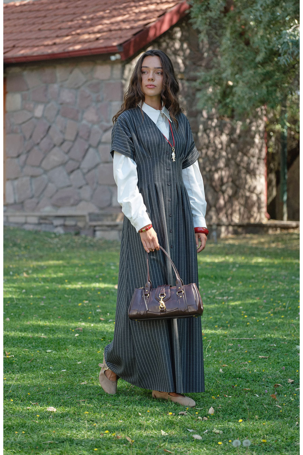 Nervürlü Antrasit Çizgili Jile Elbise Nervürlü Antrasit Çizgili Jile Elbise FA2025SS-11022 XL